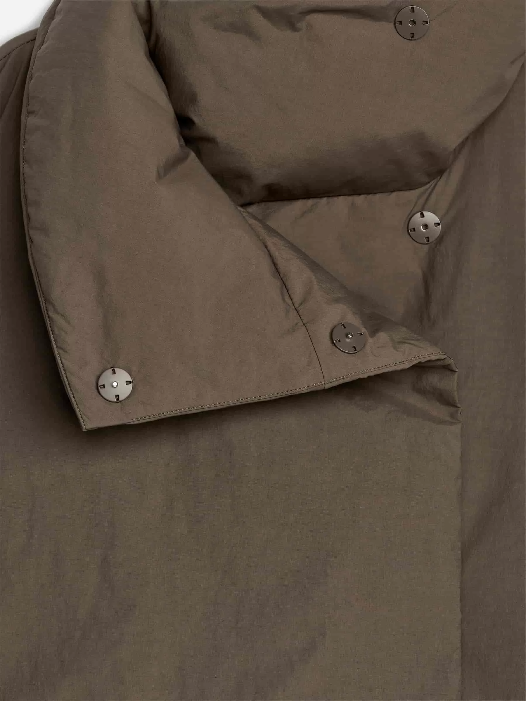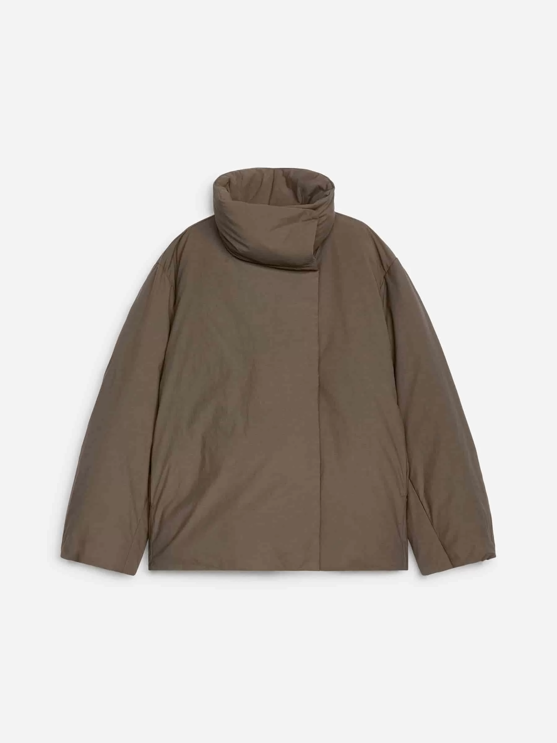 ARKE Damen Upcycled Daunenjacke mit hohem Kragen Dunkler Maulwurf