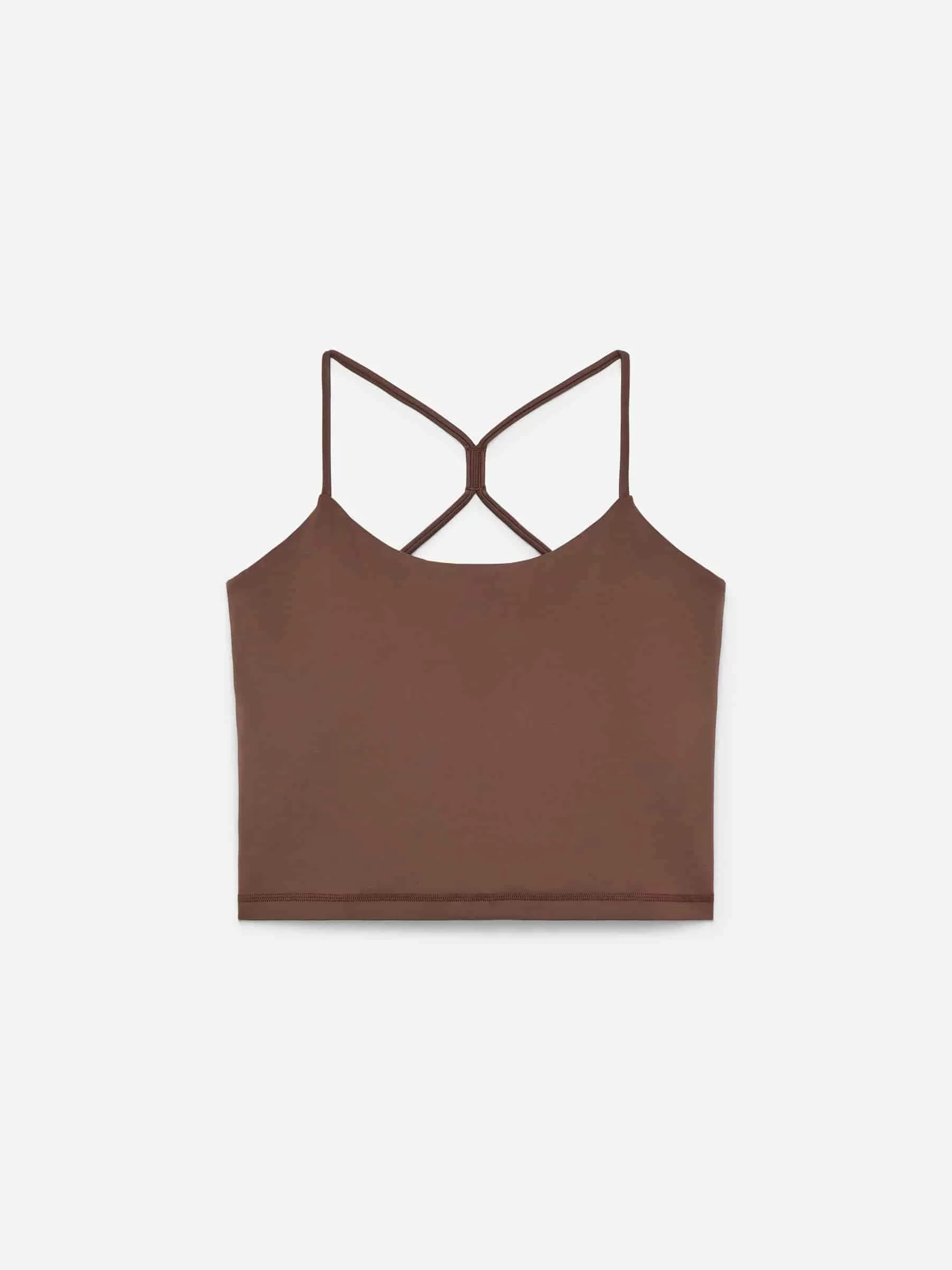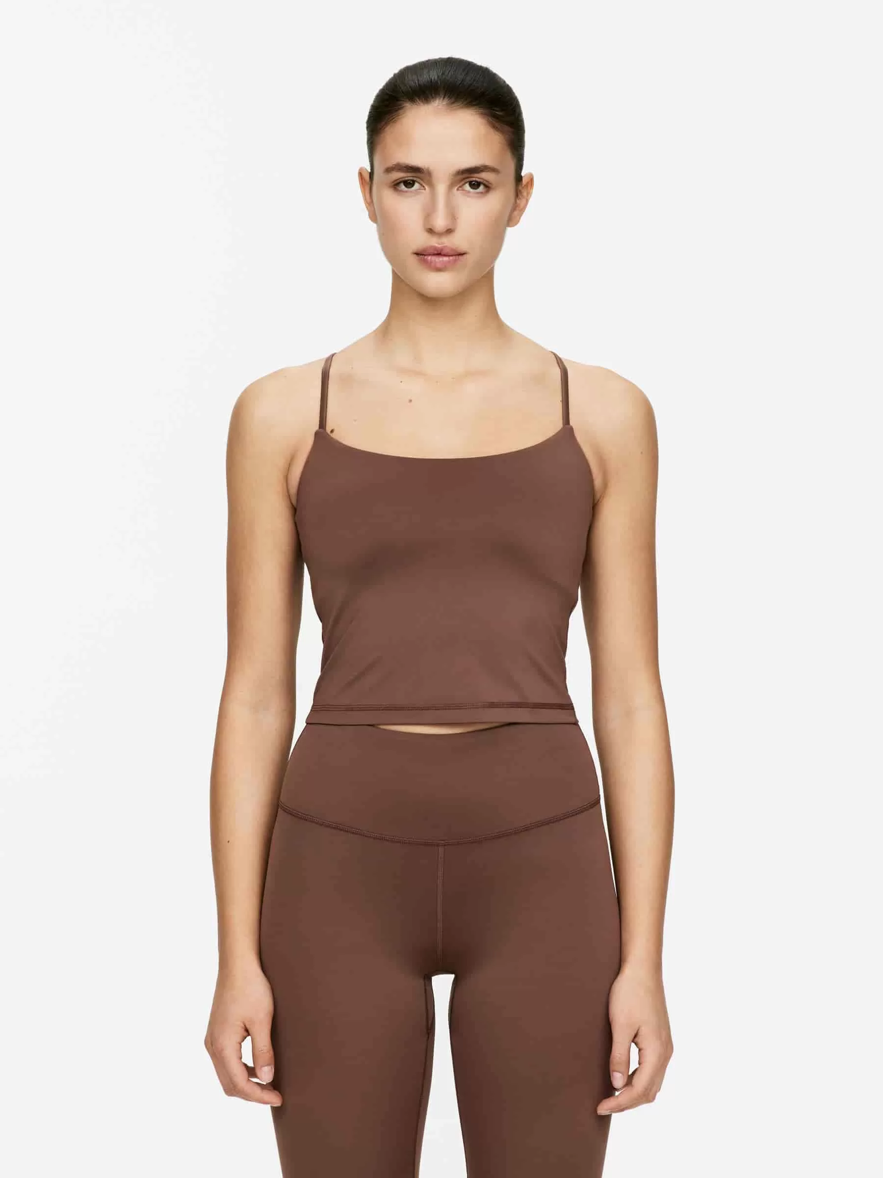 Sportoberteil aus weichem und dehnbarem, atmungsaktivem Jerseystoff. Ein verkürzter Stil mit dünnen elastischen Trägern und herausnehmbaren Polstern. Leichte Unterstützung.
