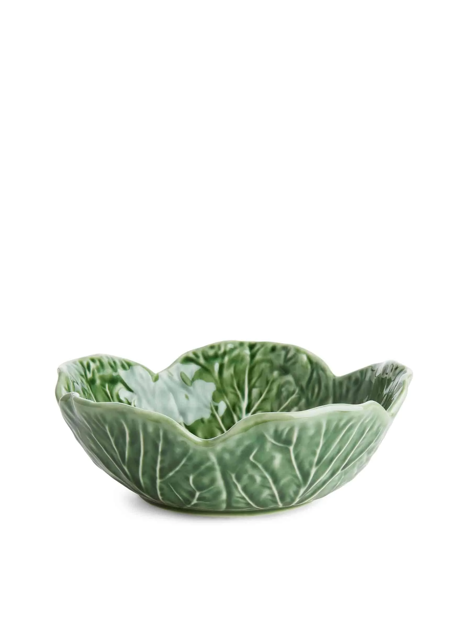 Die Kohl- und Salatblattserie aus rustikal glasiertem Steingut, die der portugiesische Künstler Raphael Bordallo Pinheiro im frühen 20. Jahrhundert schuf, enthält einige der bekanntesten und beliebtesten Geschirrteile des Unternehmens. Diese Schüssel wird in traditionellen Formen gegossen und in Portugal von Hand glasiert, mit einer wunderschön strukturierten Oberfläche.