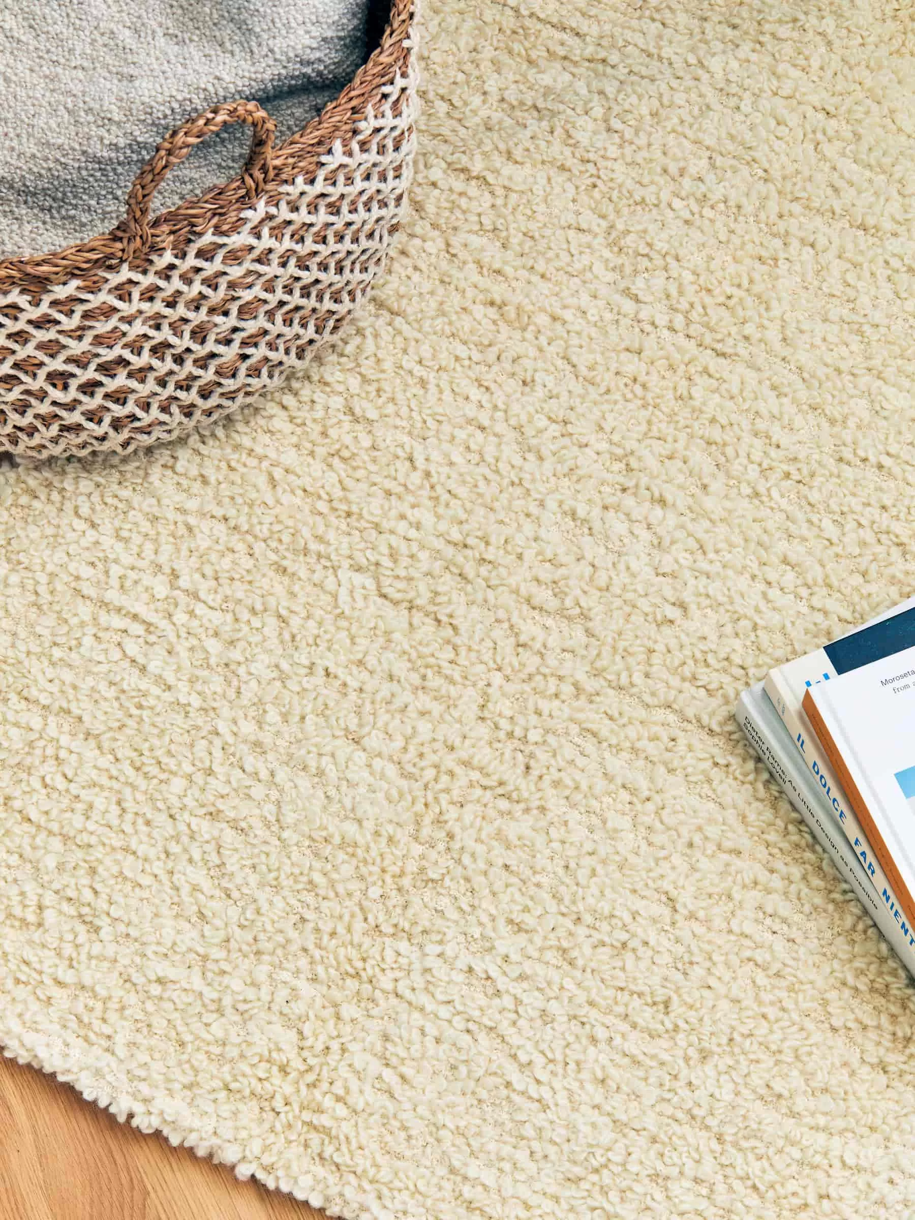 ARKE Haushaltswaren Bouclé-Teppich aus Wollmischung, 170 x 240 cm Hellbeige