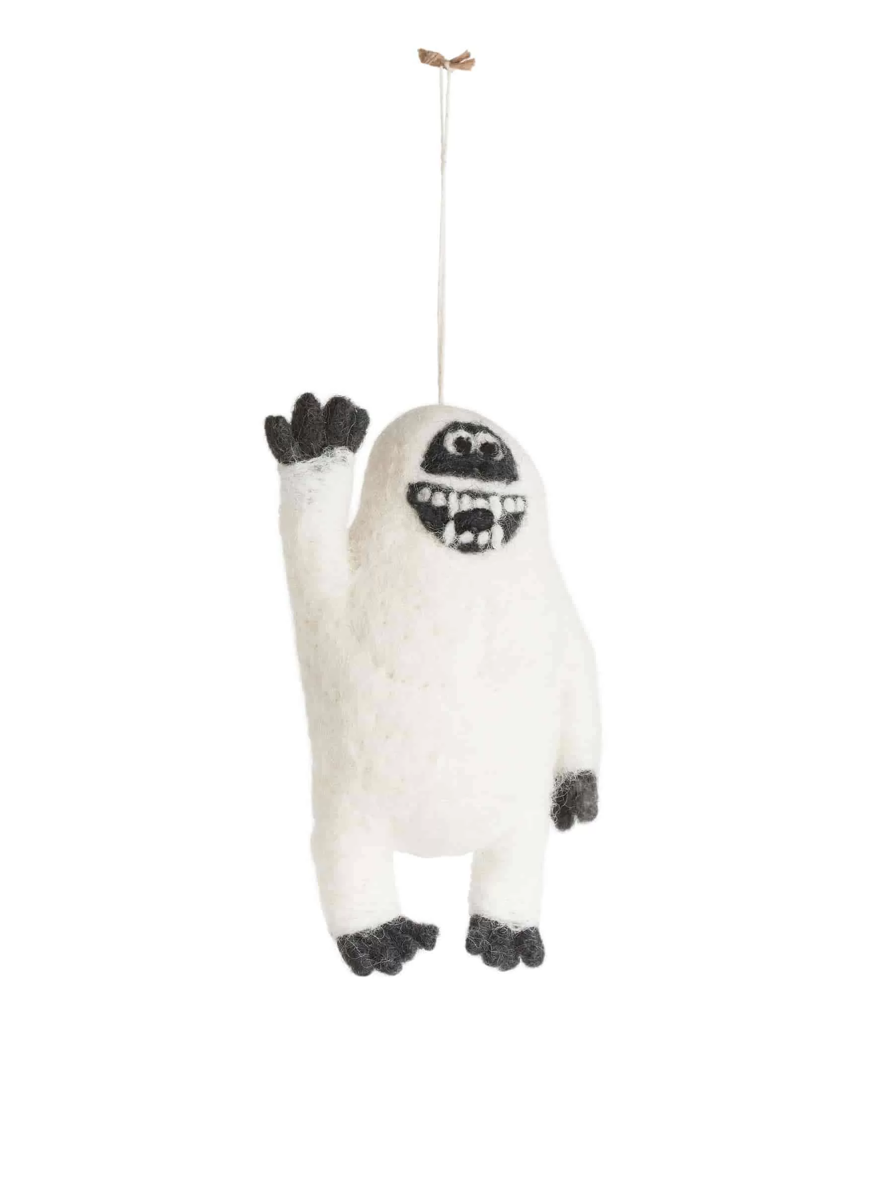Dieser winkende Yeti wurde von der britischen Marke Felt So Good entworfen und besteht aus gefilzter Wolle, die in nepalesischen Handwerksbetrieben von Hand gefertigt wird. Maße 13×8 cm. Schlaufe zum einfachen Aufhängen.