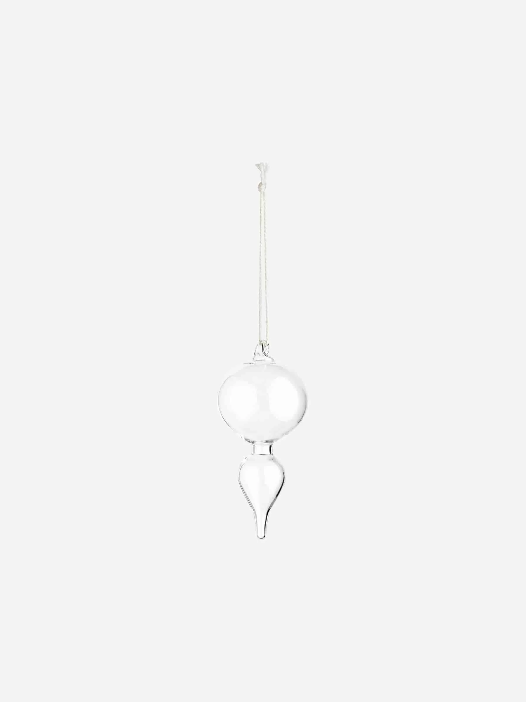 Zarte Kugel aus Glas. Schnur zum einfachen Aufhängen. Höhe 10,5 cm, Durchmesser 8,5 cm.