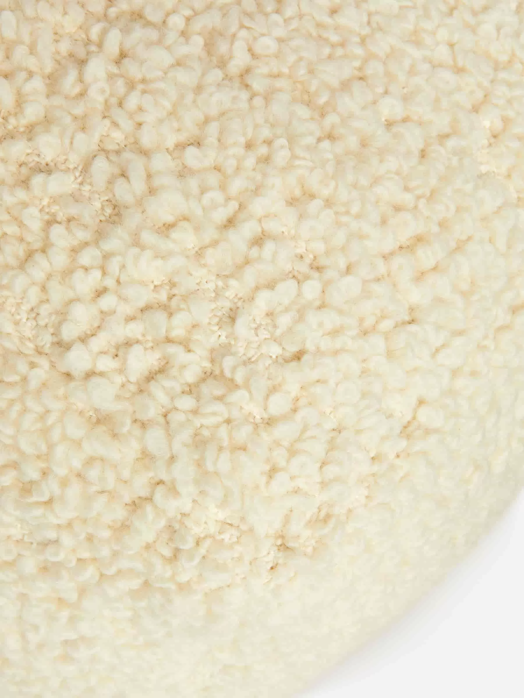 Hocker mit strukturierter Oberfläche aus einer Woll-Baumwoll-Mischung. Abmessungen 52 cm x 52 cm x 35 cm.