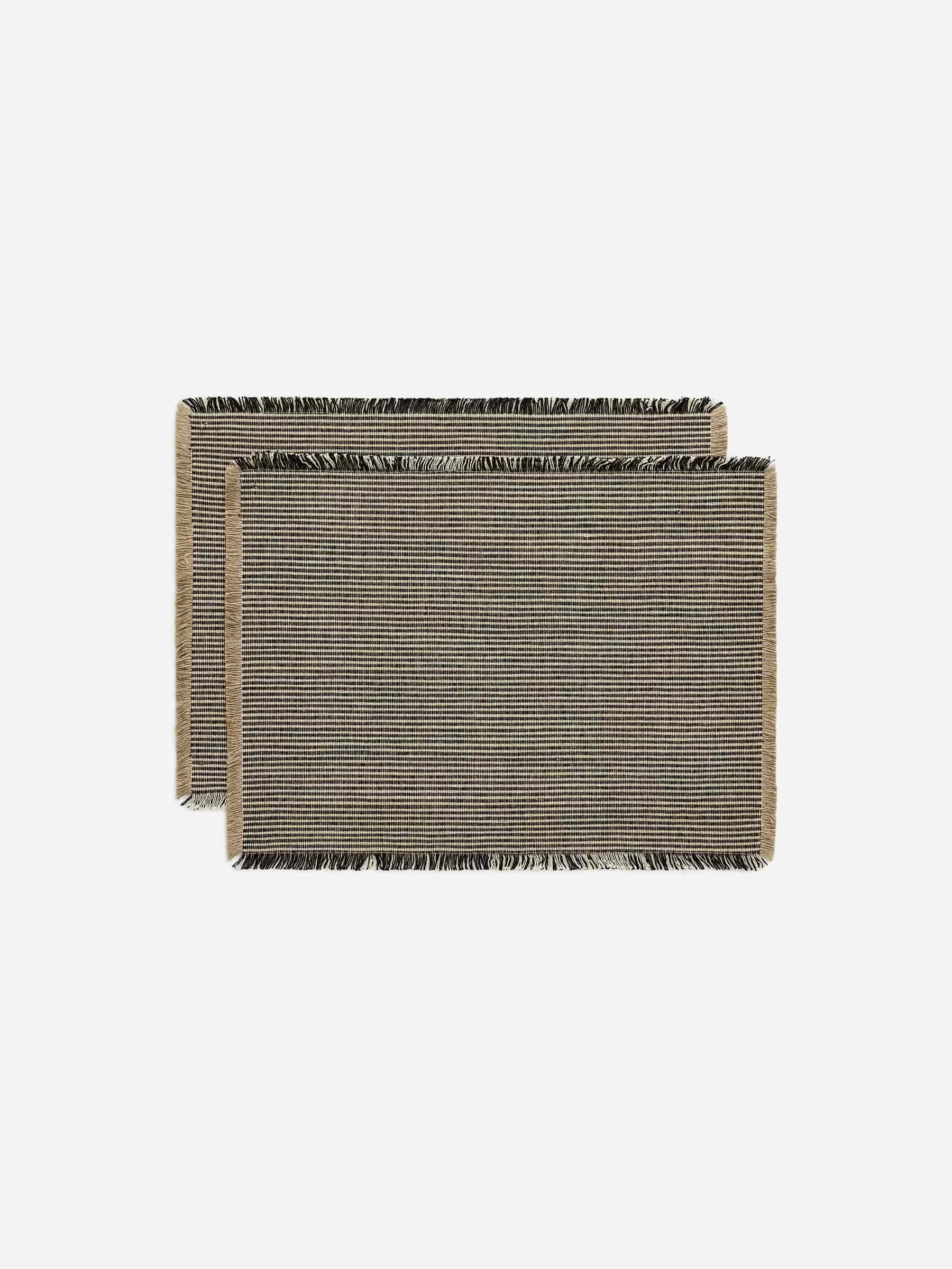 ARKE Haushaltswaren Tischset aus Leinenmischung, 2er-Set Schwarz/Beige