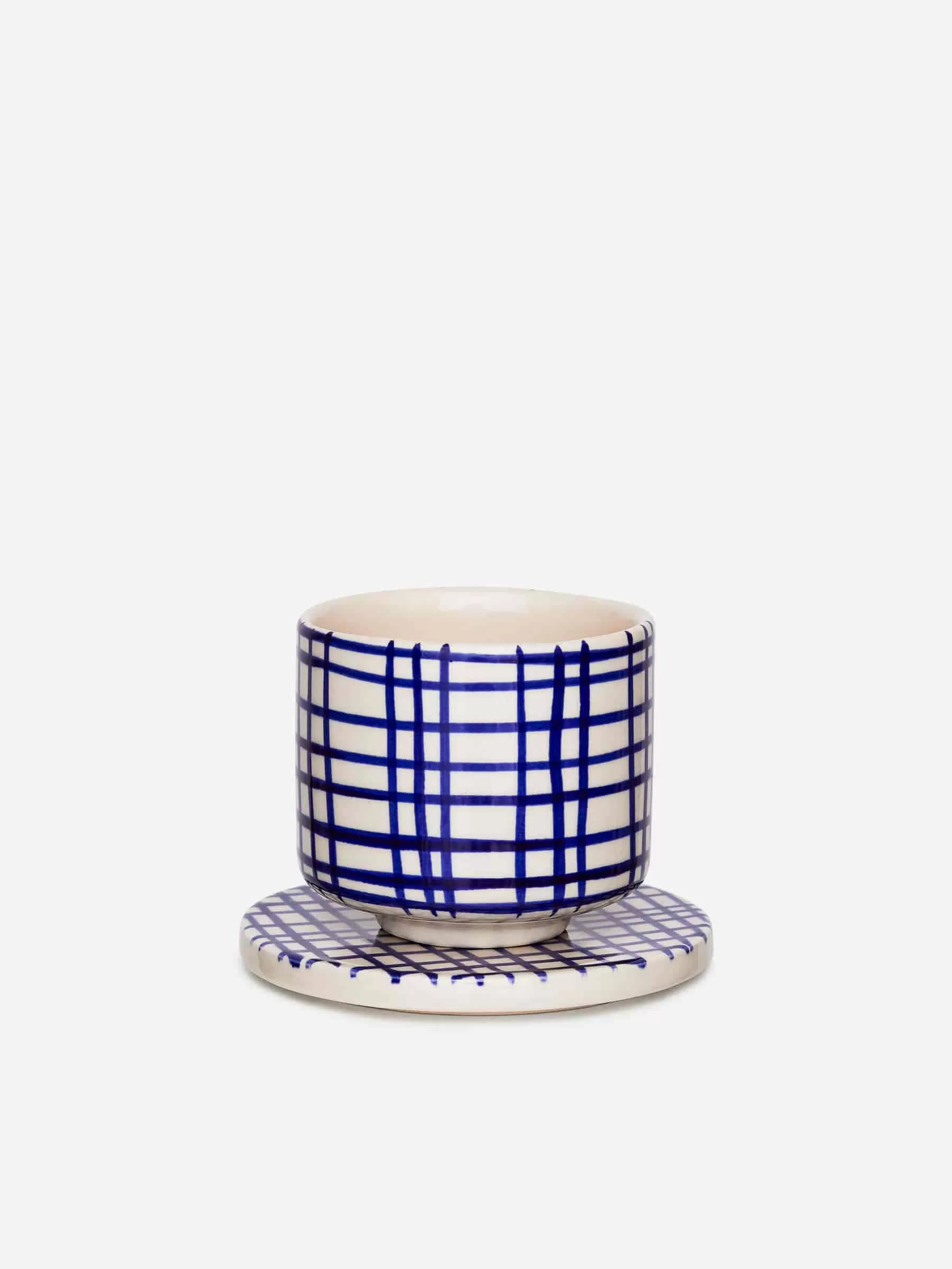 ARKE Haushaltswaren Untersetzer aus Steingut, 2er-Set Gebrochenes Weiß/Blau