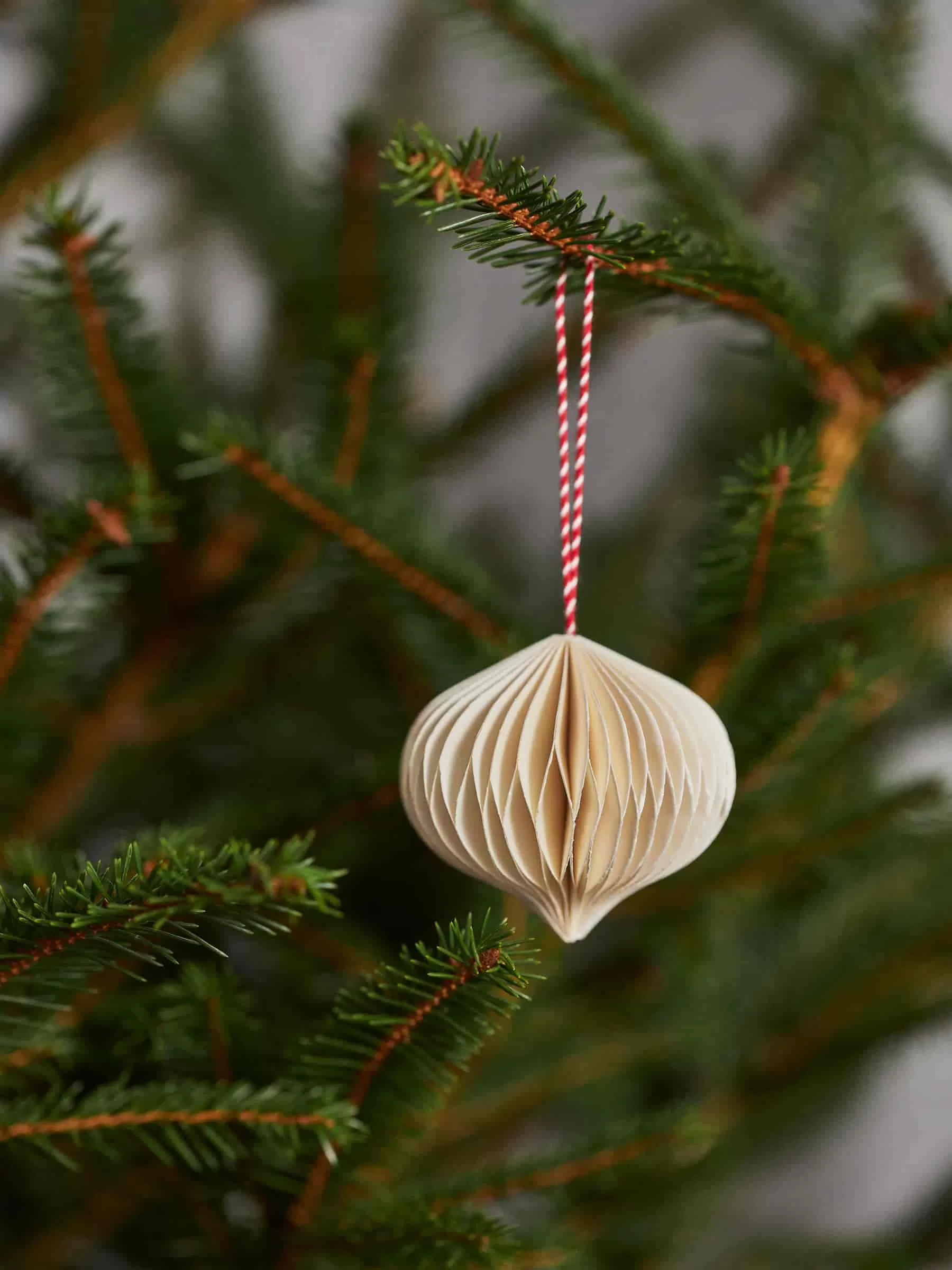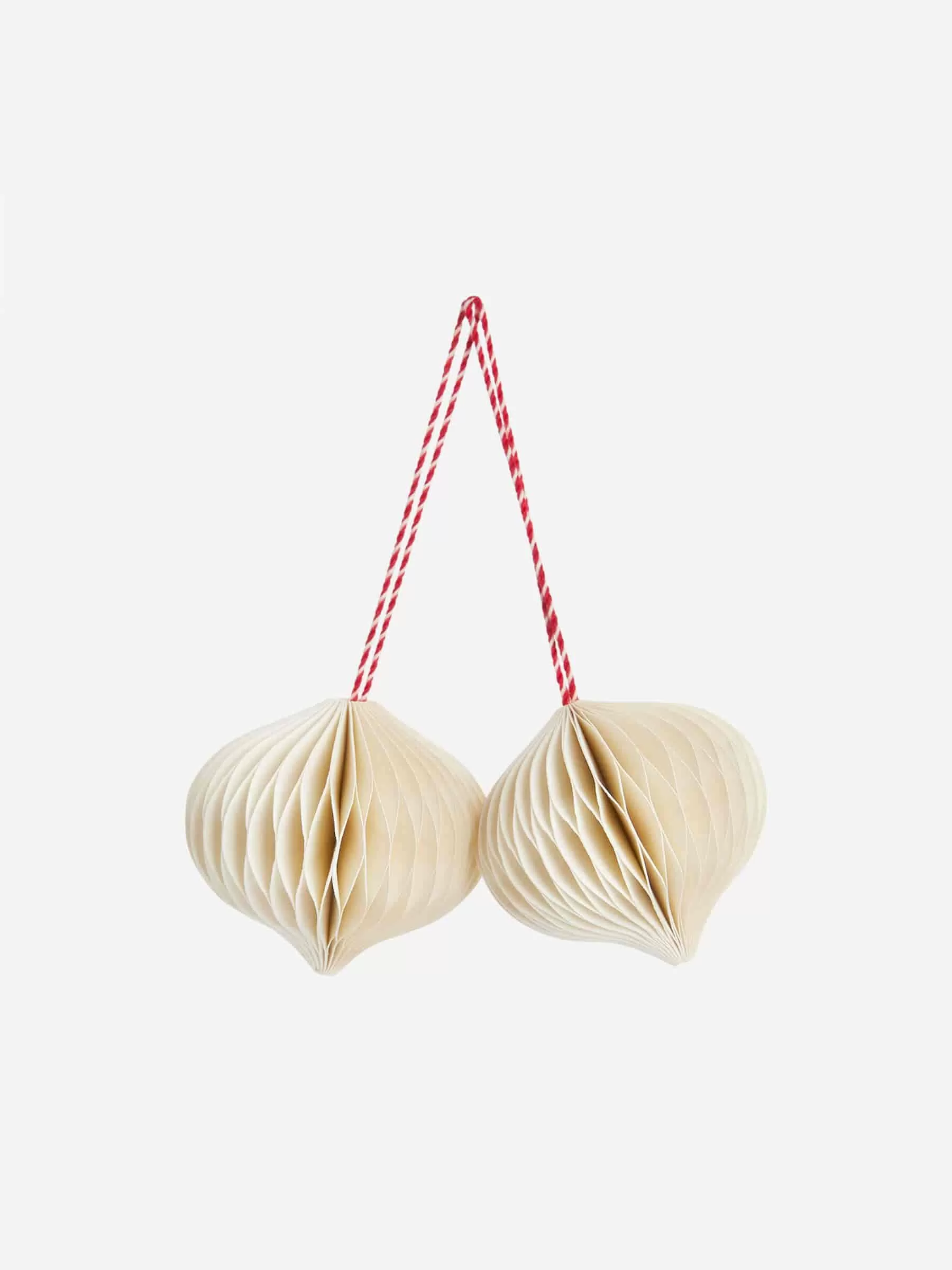Wabenornamente, handgefertigt aus stabilem Papier. Eine Baumwollschnur zum einfachen Aufhängen. Zweier-Set. Durchmesser 6 cm.