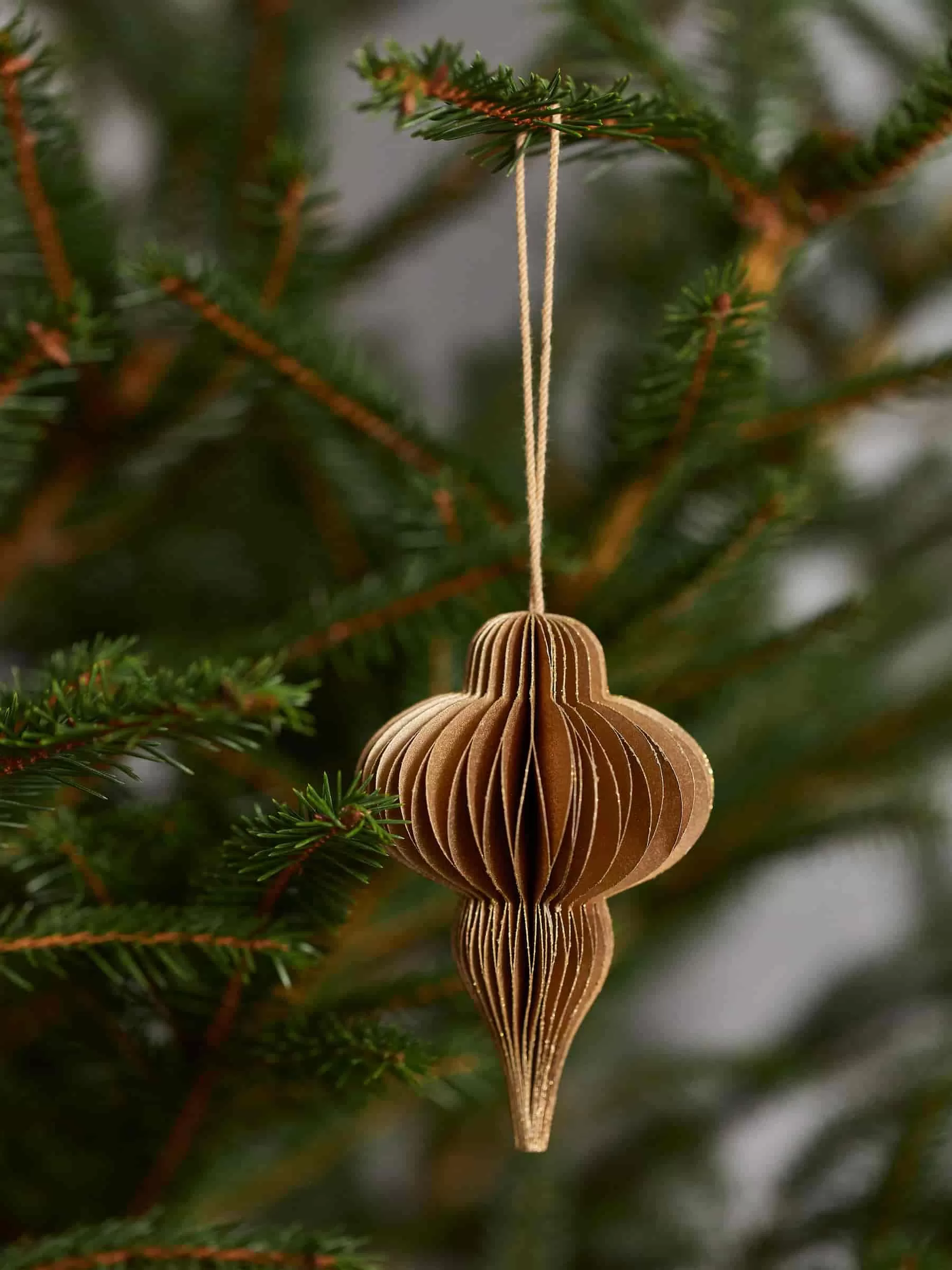 Wabenornamente, handgefertigt aus stabilem Papier. Eine Baumwollschnur zum einfachen Aufhängen. Zweier-Set. Höhe 9 cm.