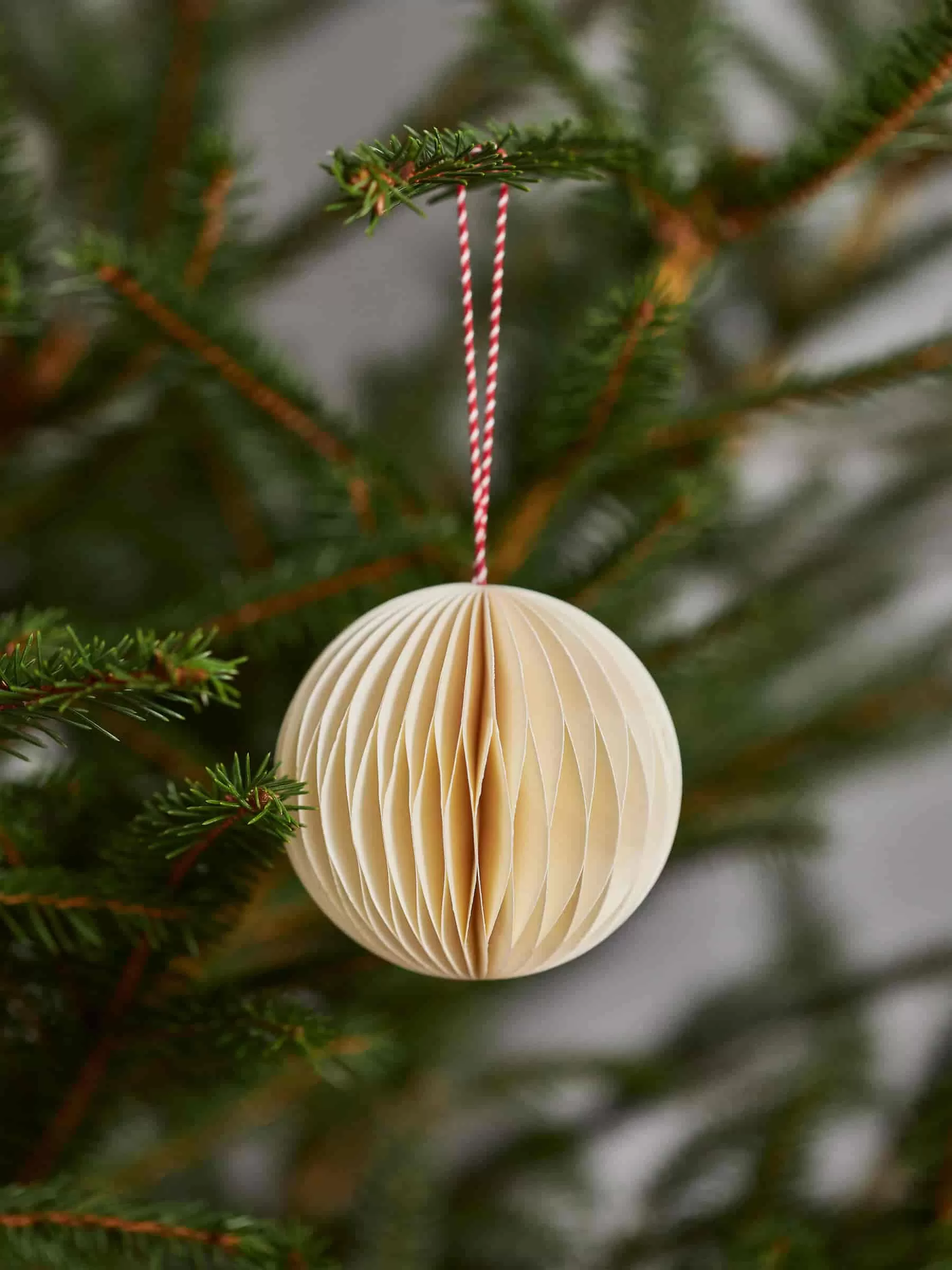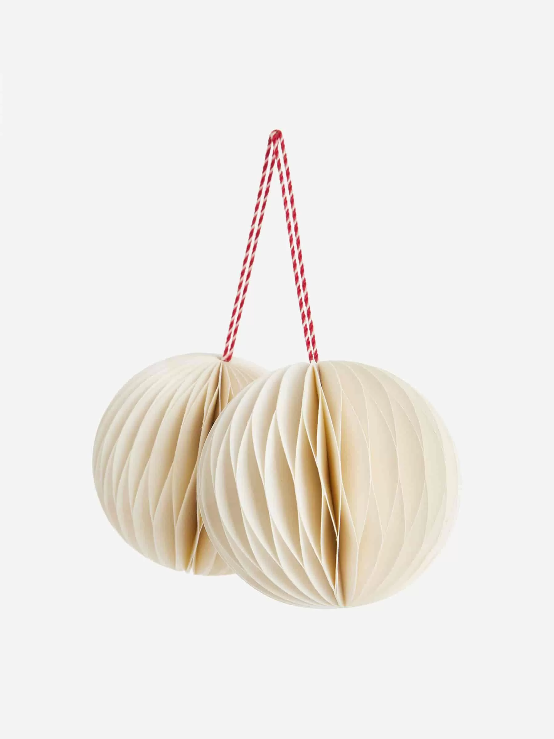 Wabenornamente, handgefertigt aus stabilem Papier. Eine Baumwollschnur zum einfachen Aufhängen. Zweier-Set. Durchmesser 7,5 cm.