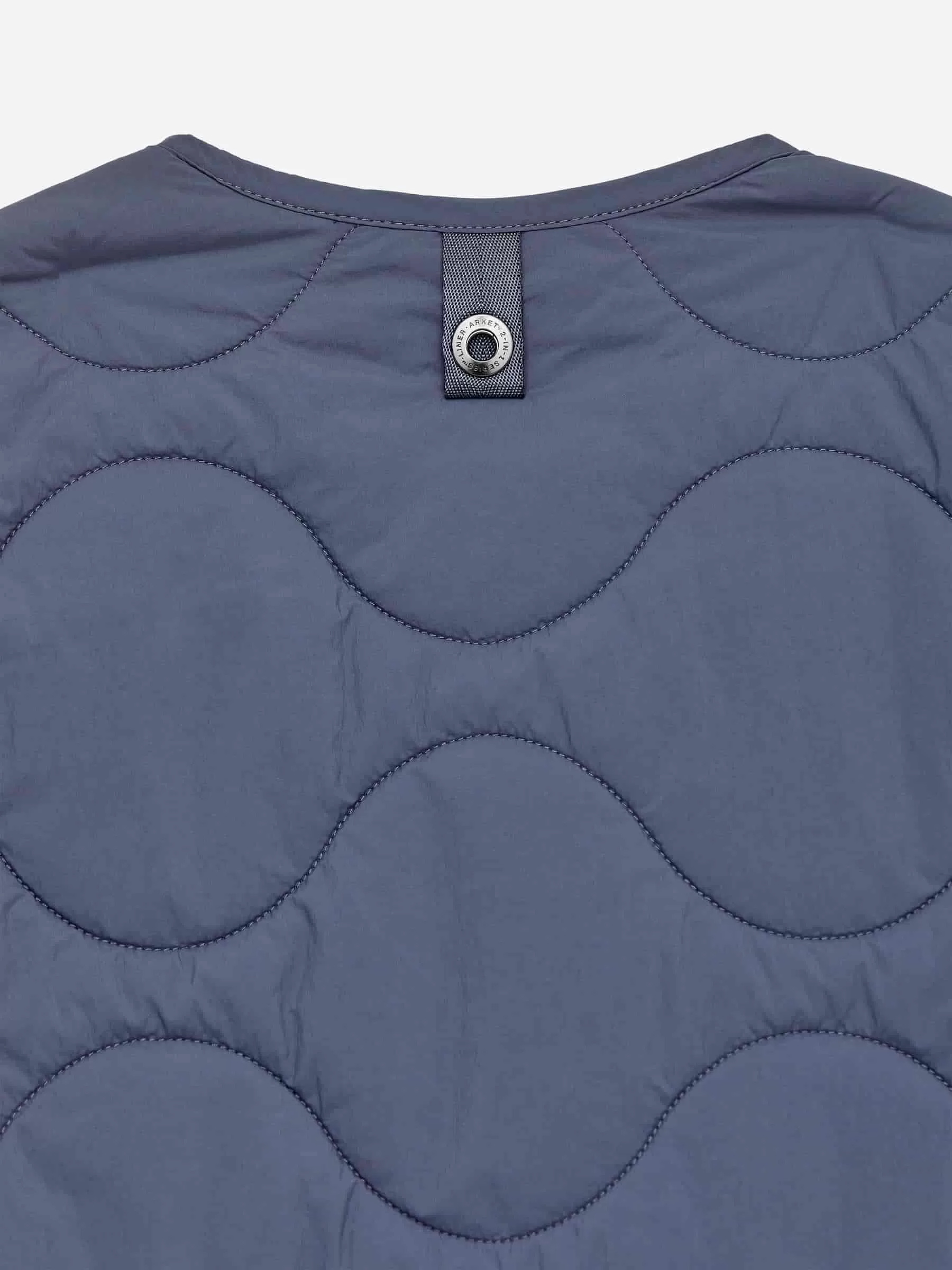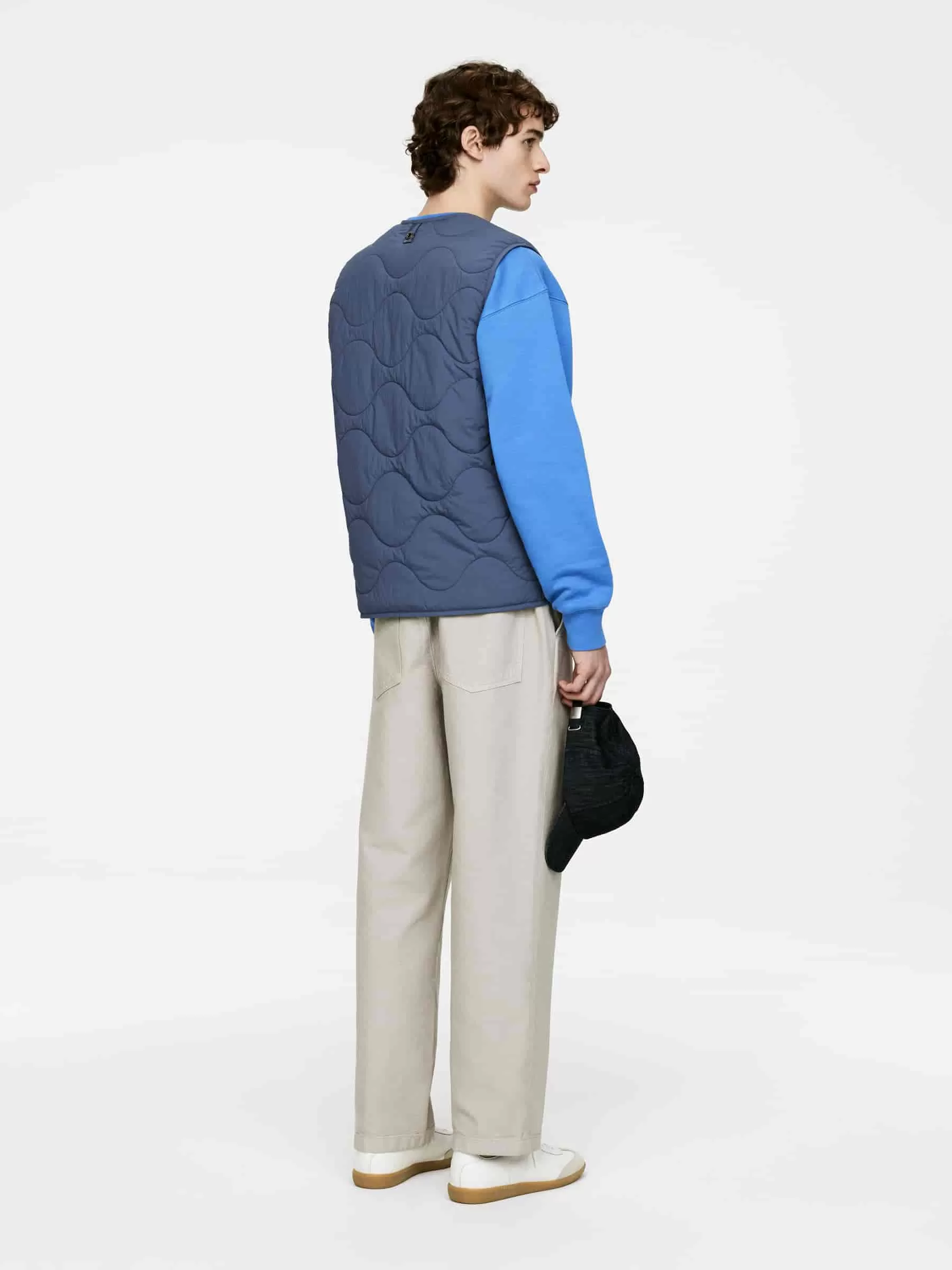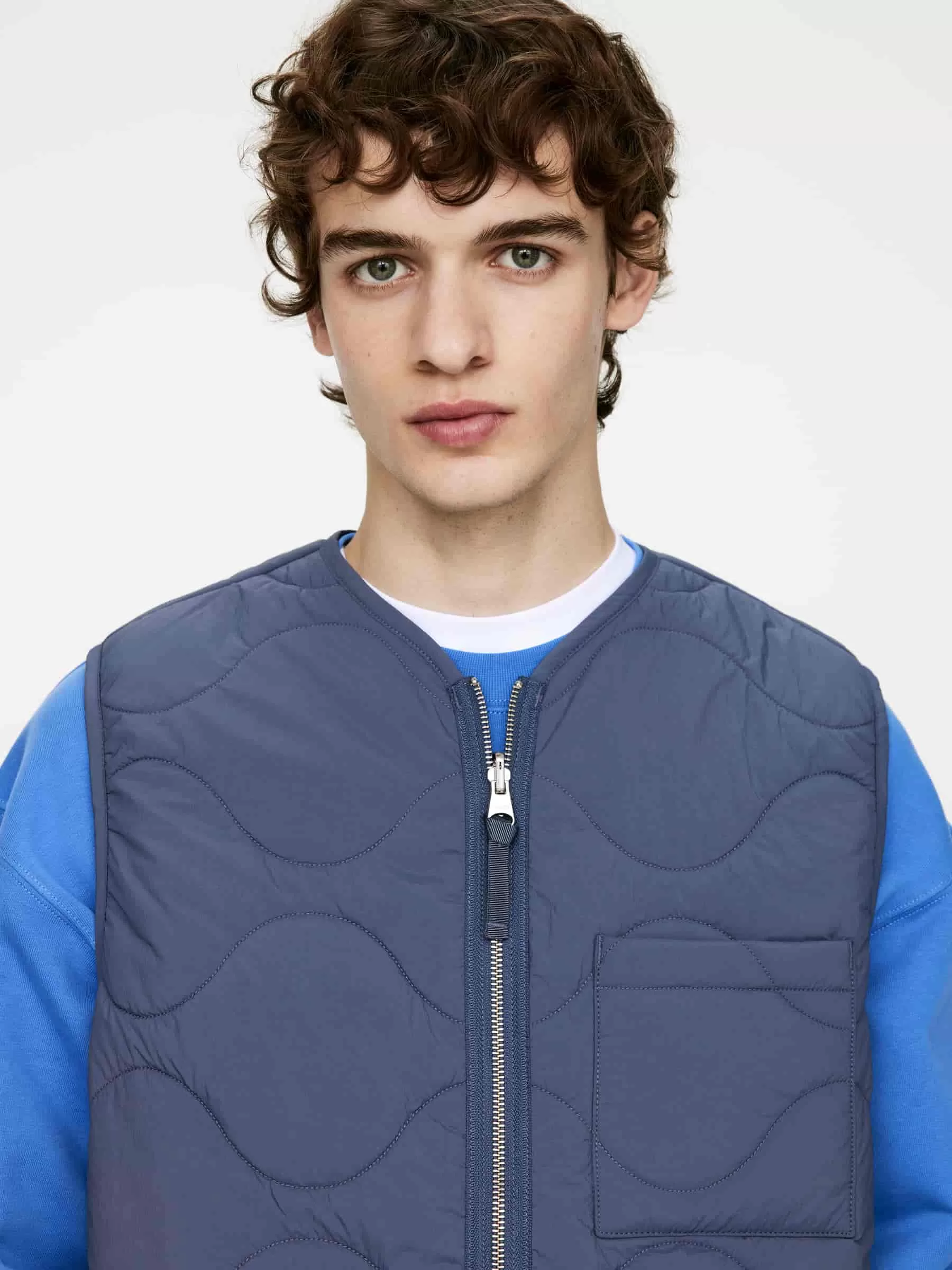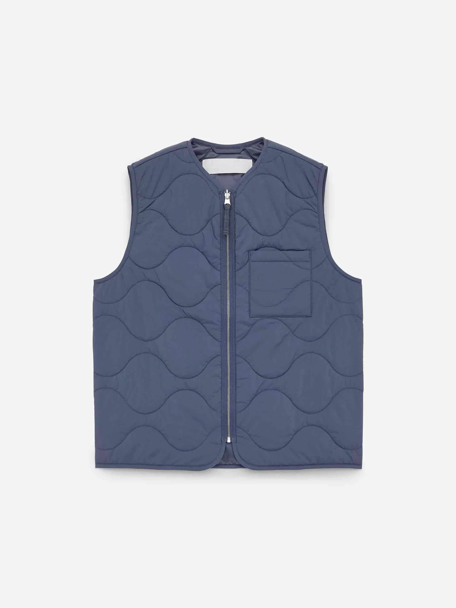 Kompakte wattierte Weste mit ARKETs charakteristischer Zwiebelsteppung. Das Außenmaterial ist eine Ripstop-Konstruktion und die Polsterung bietet leichte Isolierung. Die Weste verfügt über einen Frontreißverschluss, eine aufgesetzte Tasche auf der linken Seite und eine aufgesetzte Innentasche. Winddichtes Material und wasserabweisende Ausrüstung. Dieses Kleidungsstück ist Teil der 2-in-1-Serie, einem modularen Oberbekleidungssystem, das Schalen und isolierende Einlagen umfasst, die speziell dafür konzipiert sind, zusammengesteckt zu werden und einen vollständig gepolsterten Mantel zu bilden.