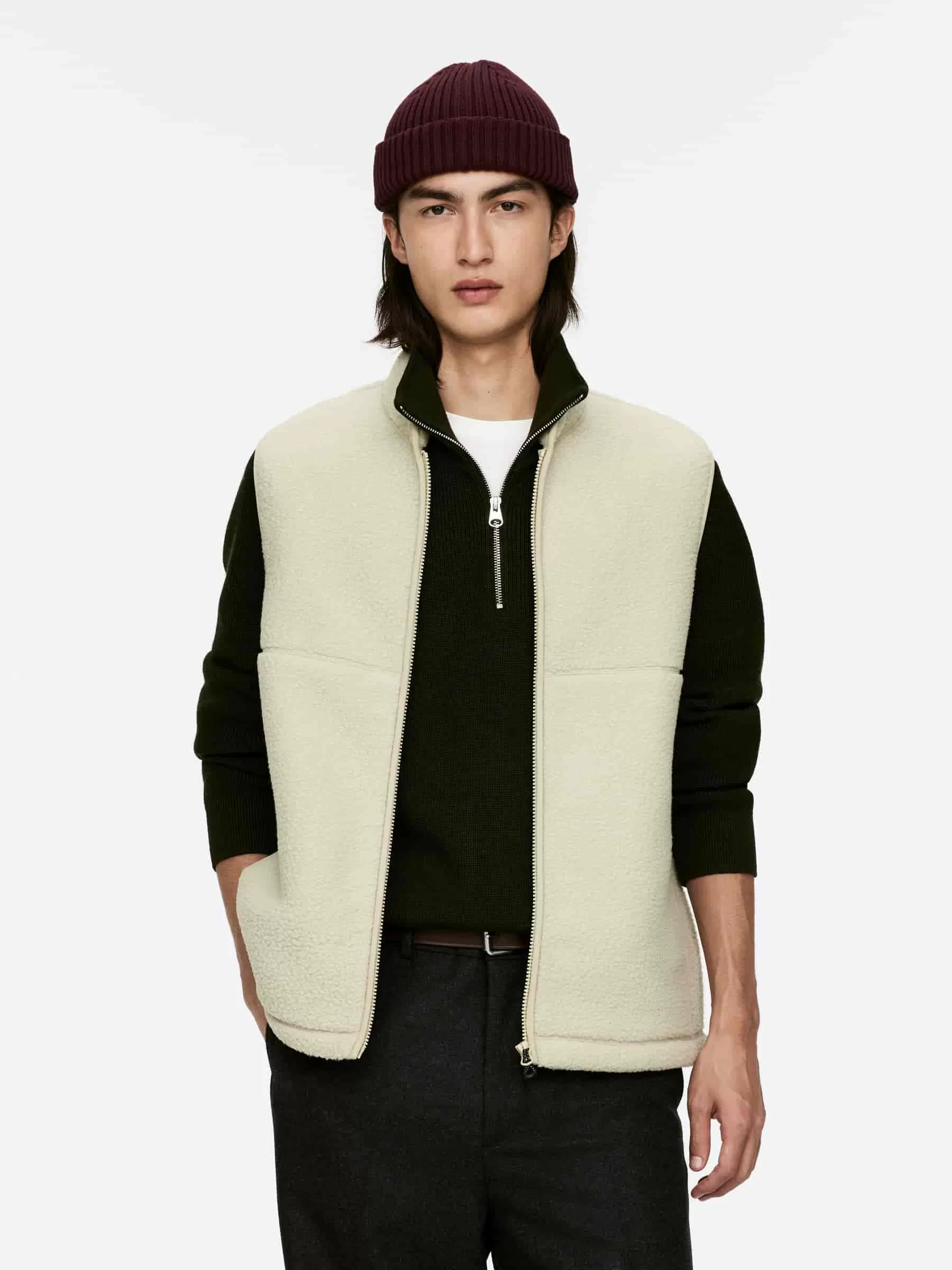 Isolierende Fleeceweste mit 2-Wege-Reißverschluss. Es verfügt über Vordertaschen und elastische Reißverschlussschieber zum einfachen Öffnen mit Handschuhen. Die doppellagige Konstruktion sorgt für zusätzliche Wärme.
