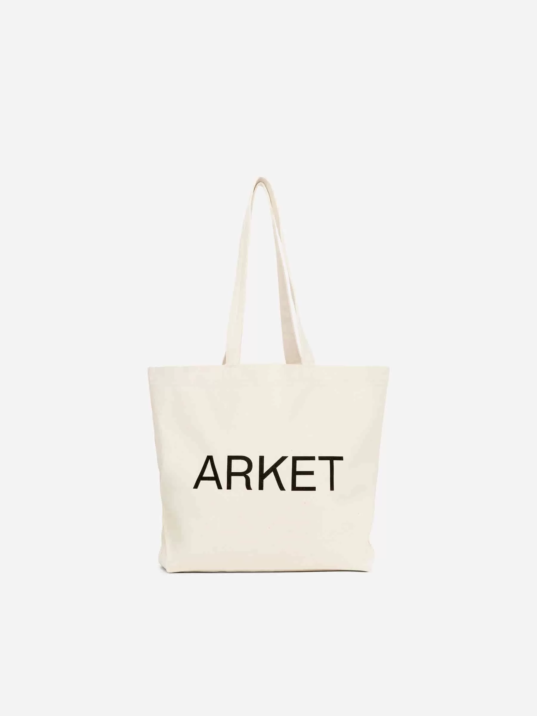 Tasche aus robustem Baumwoll-Canvas mit Doppelgriffen und einseitig aufgedrucktem ARKET-Logo. Eine praktische Größe für den täglichen Gebrauch. Bodenmaße 33 cm x 16 cm. Höhe 36 cm.