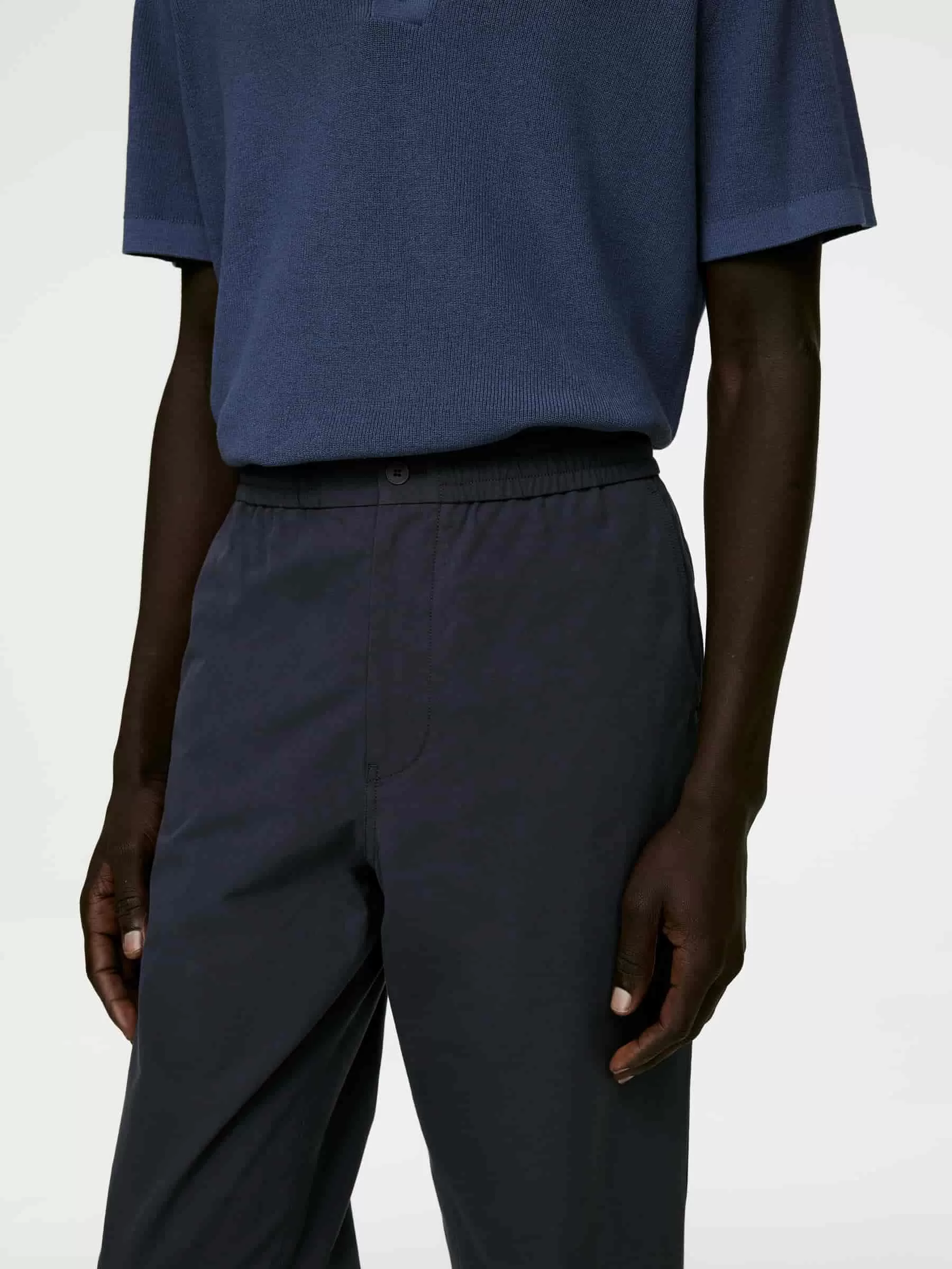 Baumwollhose mit innenliegendem Kordelzug und Gummizug in der Taille. Knopfverschluss und Reißverschluss. Schnitt für eine normale Passform mit geradem Bein. Schräge Vordertaschen und aufgesetzte Taschen hinten.