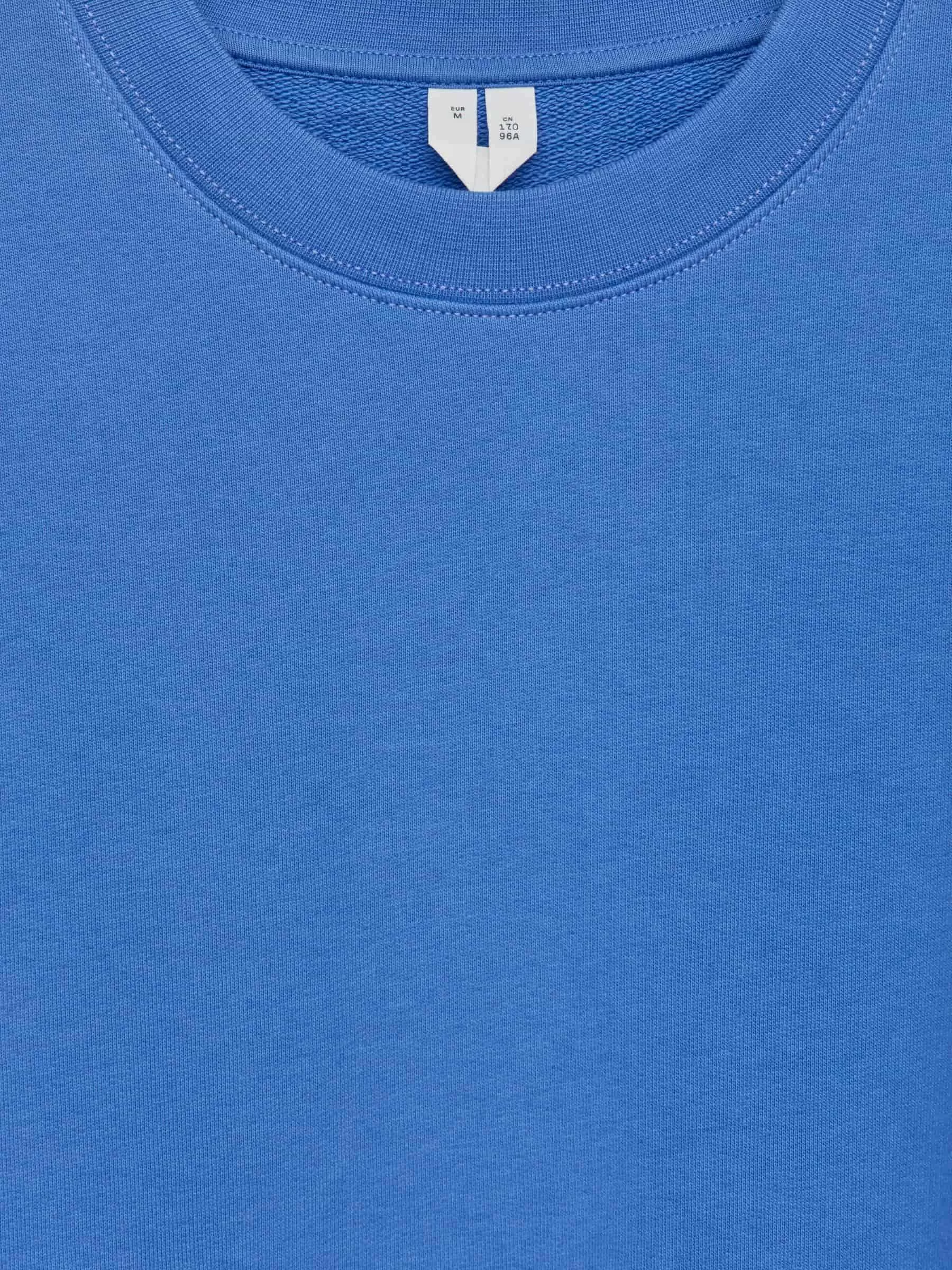Sweatshirt genäht aus einem French-Terry-Stoff aus Baumwolle. Ein locker geschnittener Stil mit leicht überschnittenen Schultern. Gerippte Besätze.