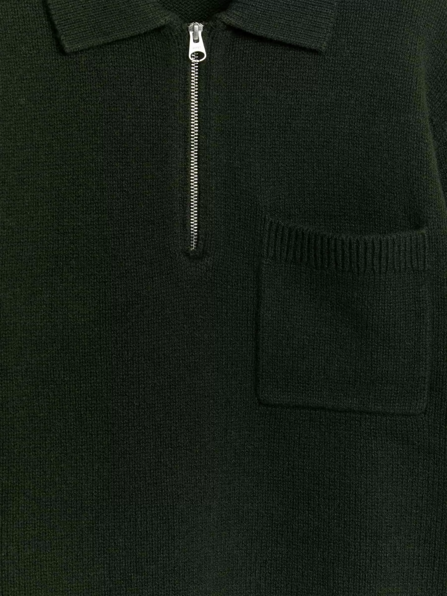 ARKE Herren Gestricktes Woll-Poloshirt mit Reißverschluss Dunkelgrün