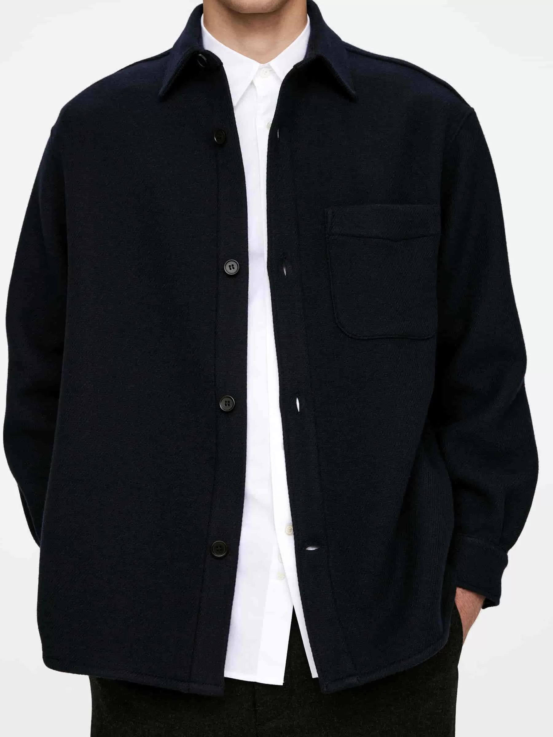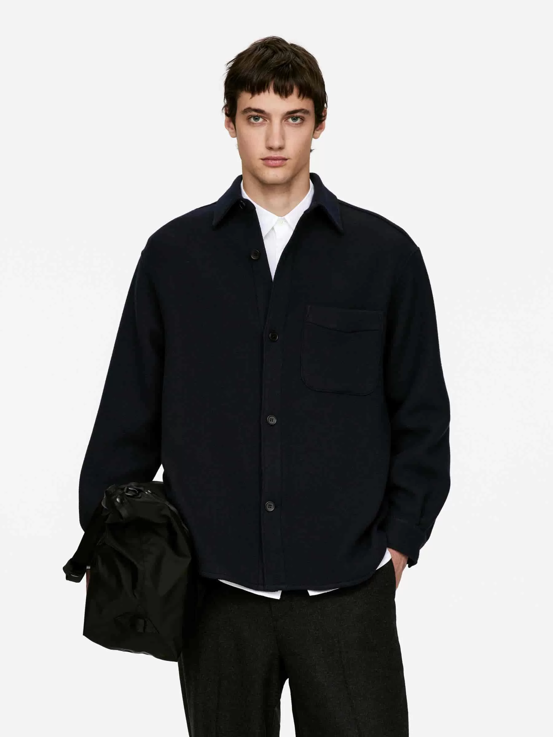 ARKE Herren Hemd aus Wollmischung Dunkelblau