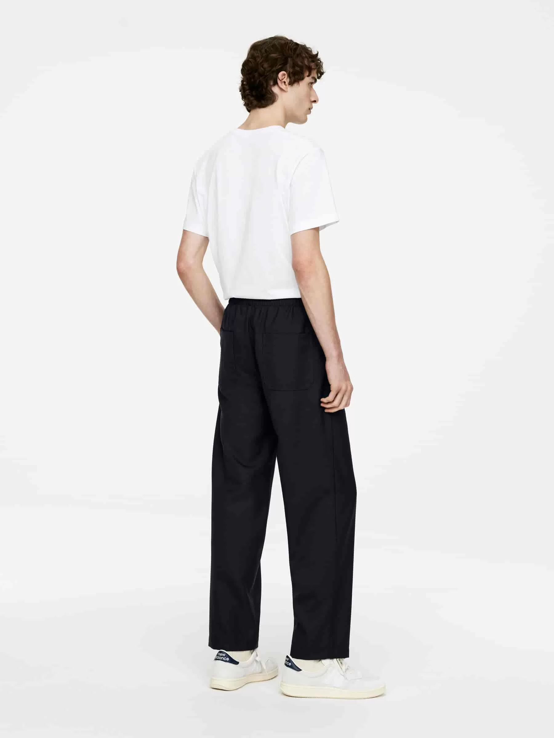 Hose aus Hopsack-Wollmischung. Für eine entspannte, gerade Passform geschnitten und mit Gummizügen und einem Kordelzug in der Taille gestylt. Taschen an den Seitennähten und aufgesetzte Taschen hinten. Hosenschlitz mit Reißverschluss. Diese Hose enthält 46 % RWS-Wolle, zertifiziert durch die Kontrollunion 815347. Produkte, die nach dem Responsible Wool Standard (RWS) zertifiziert sind, enthalten Wollfasern von Farmen, die unabhängig nach Tierschutz- und Landbewirtschaftungsanforderungen zertifiziert sind. Teil des Sets.