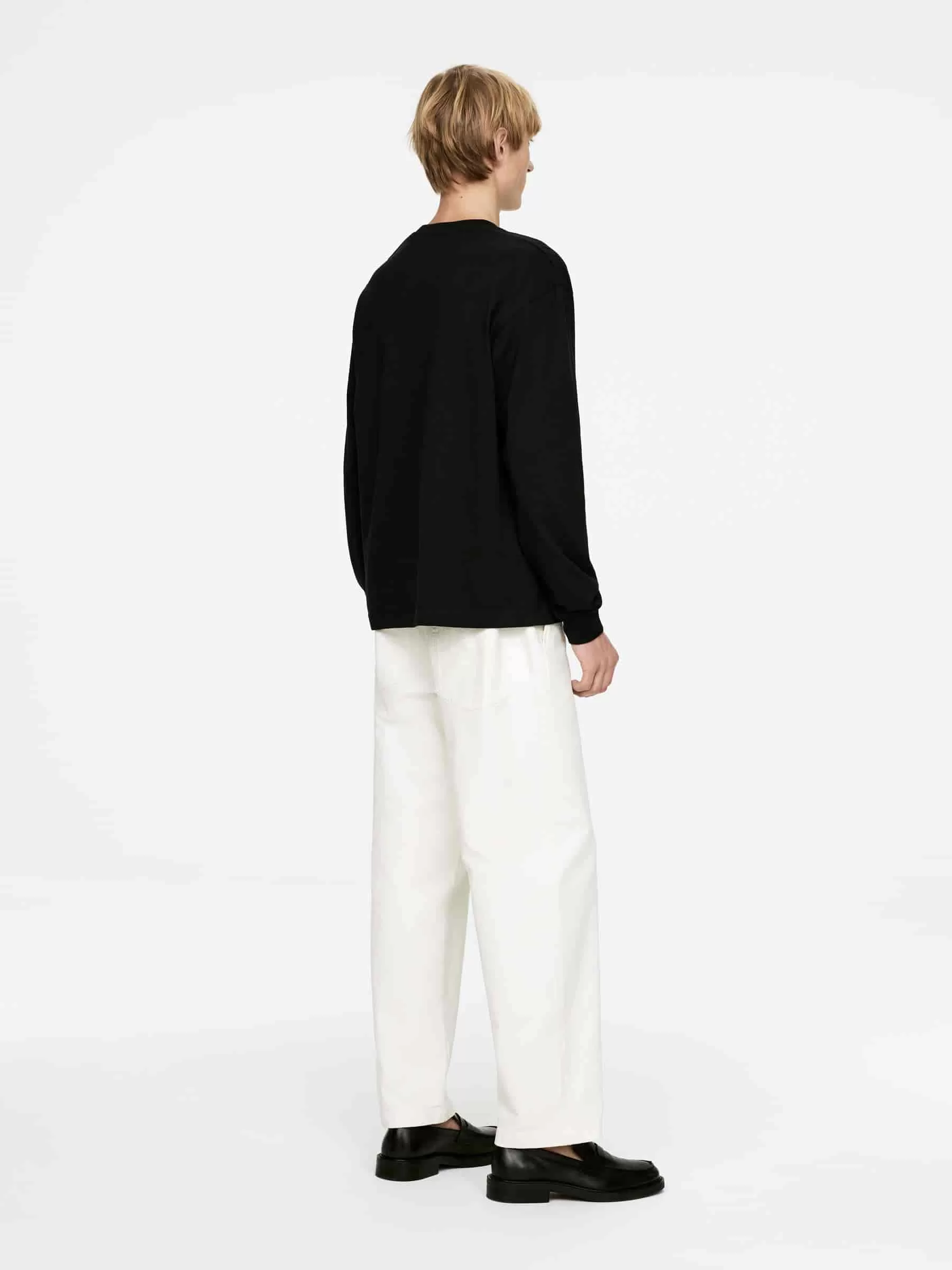 Langärmliges Baumwoll-T-Shirt mit lockerer Passform und überschnittenen Schultern. Rippbündchen an Bündchen und Hals.