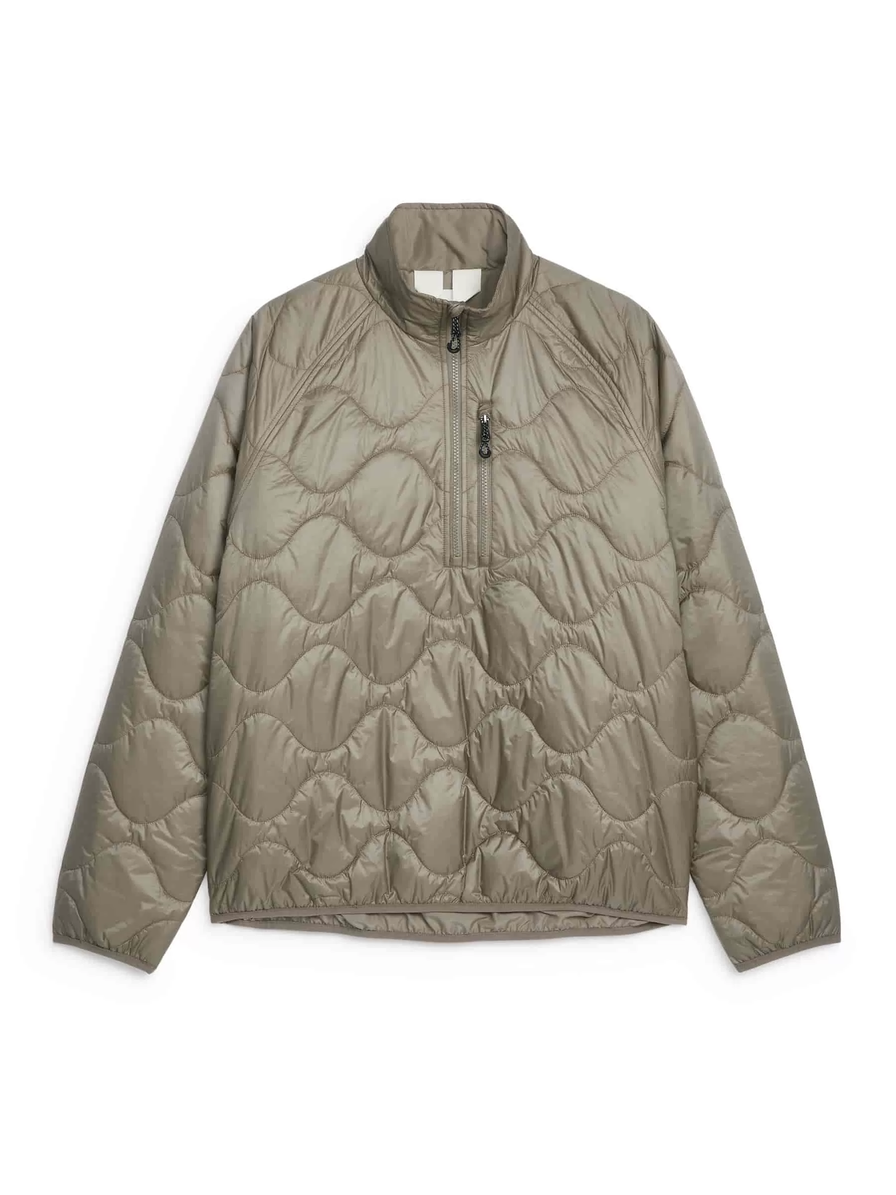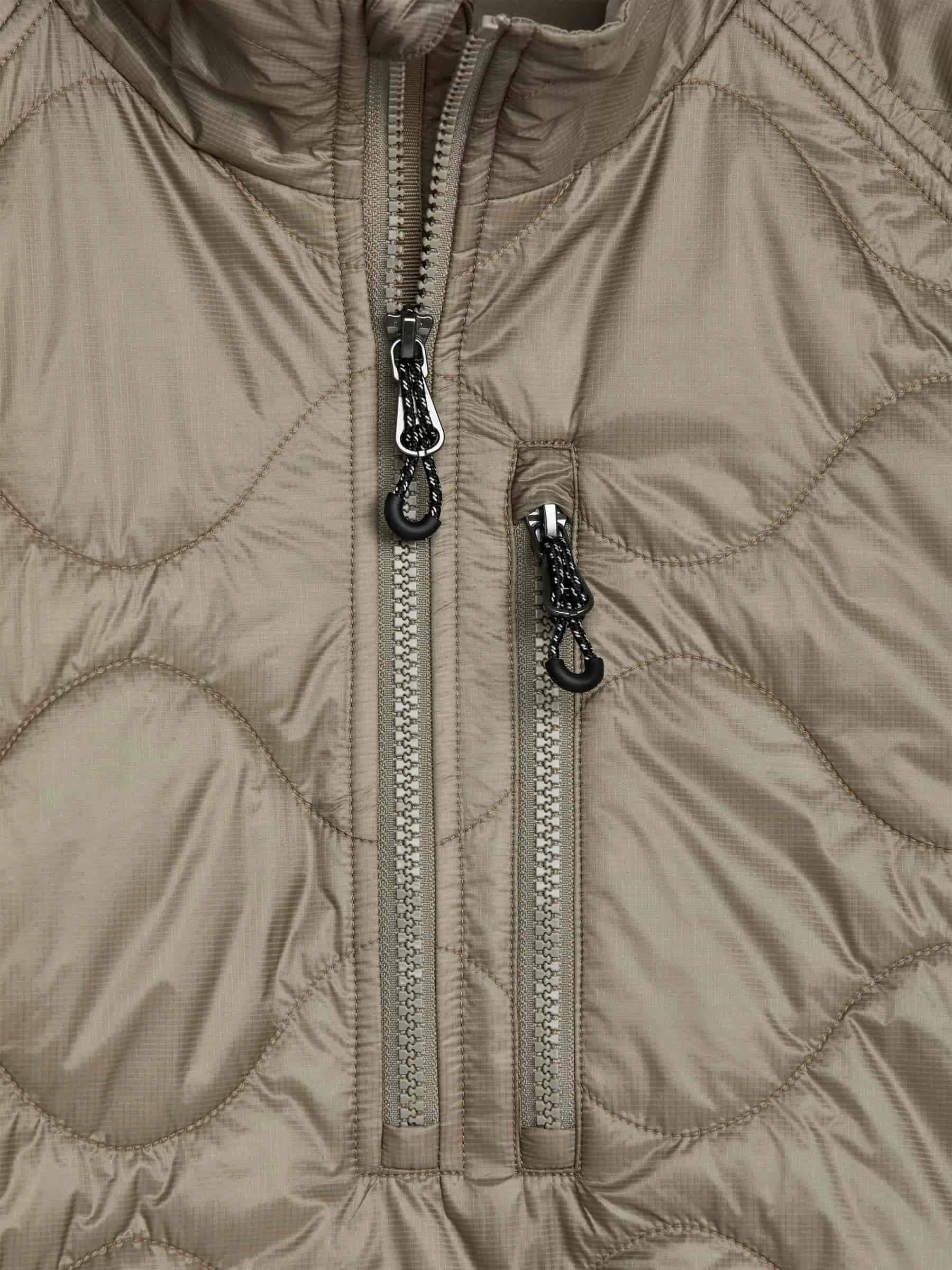 Steppjacke mit leichter Wattierung und Ripstop-Außenmaterial. Ein Pop-Over-Stil mit hohem Kragen und halbem Reißverschluss. Ärmel im Raglanschnitt für mehr Bewegungsfreiheit. Einzelne Brusttasche mit Reißverschluss. Elastische Einfassung am Ärmelende und am unteren Saum. Ein vielseitiges Kleidungsstück, das auch in der kälteren Jahreszeit als Lagenlook getragen werden kann.