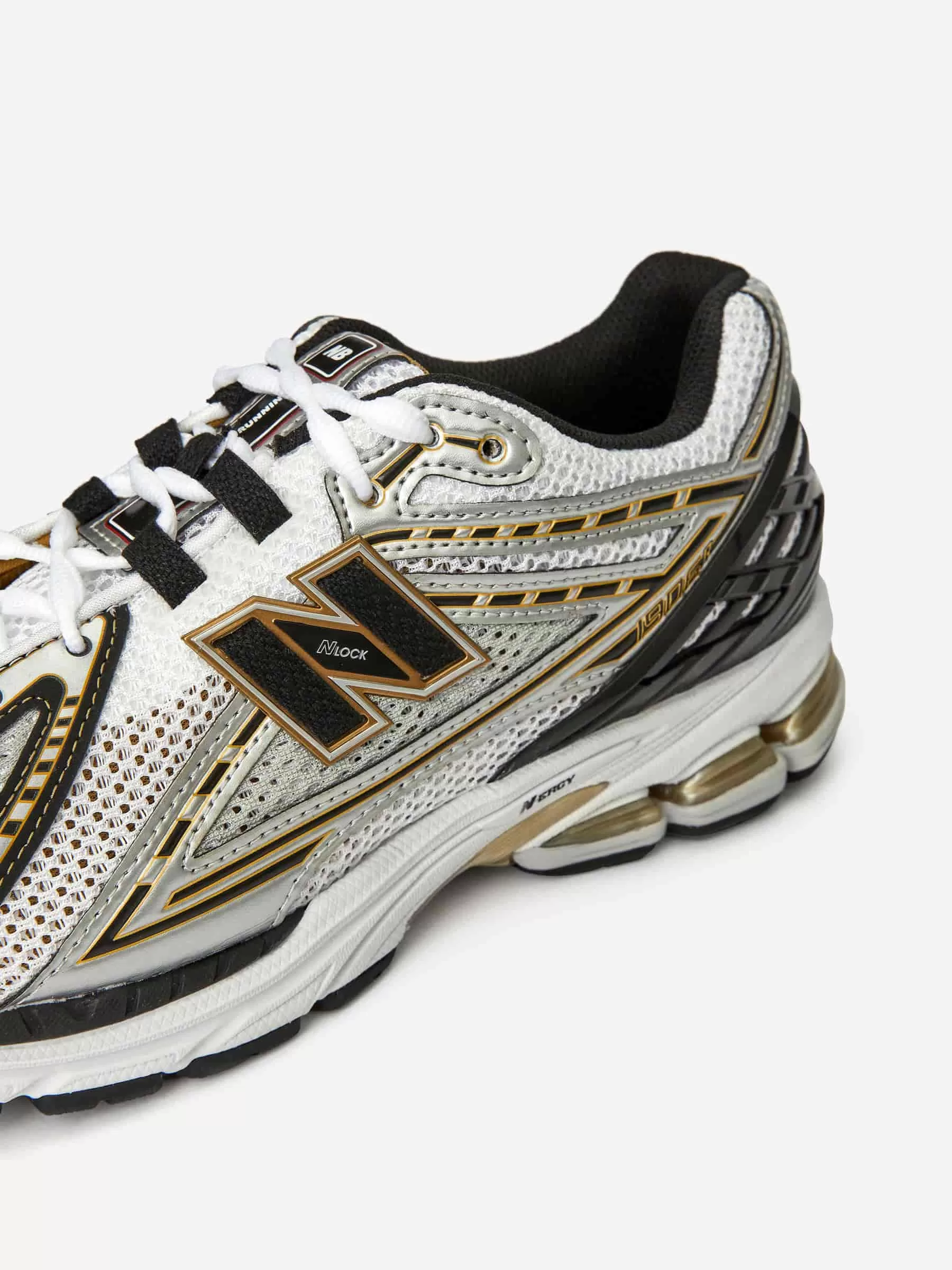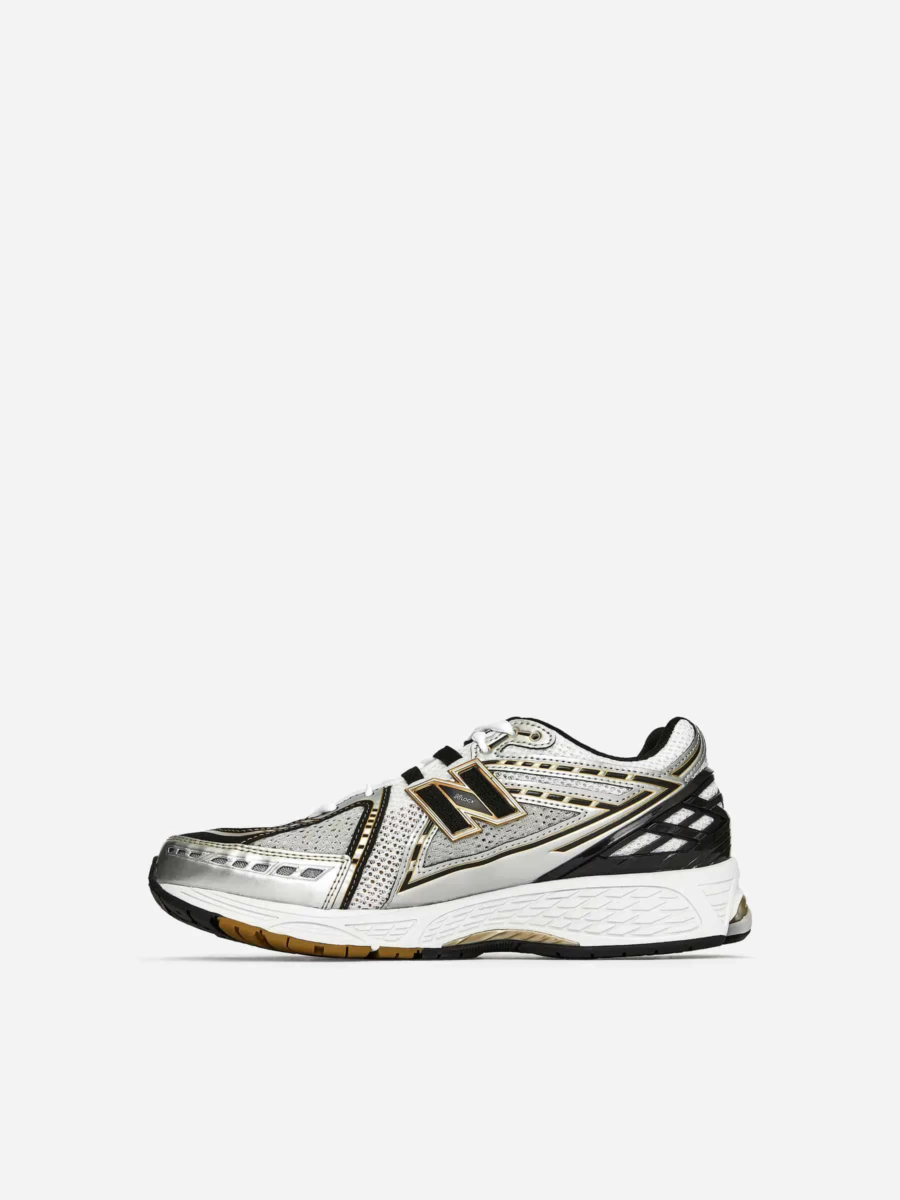 Der New Balance 1906R verfügt über eine Sohleneinheit mit einer Kombination aus flexibler ACTEVA LITE-Dämpfung, stoßdämpfendem N-ergy und segmentierten ABZORB SBS-Stollen an der Ferse. Das Obermaterial besteht aus offenmaschigem Mesh und einer Reihe geschwungener Synthetiküberzüge.