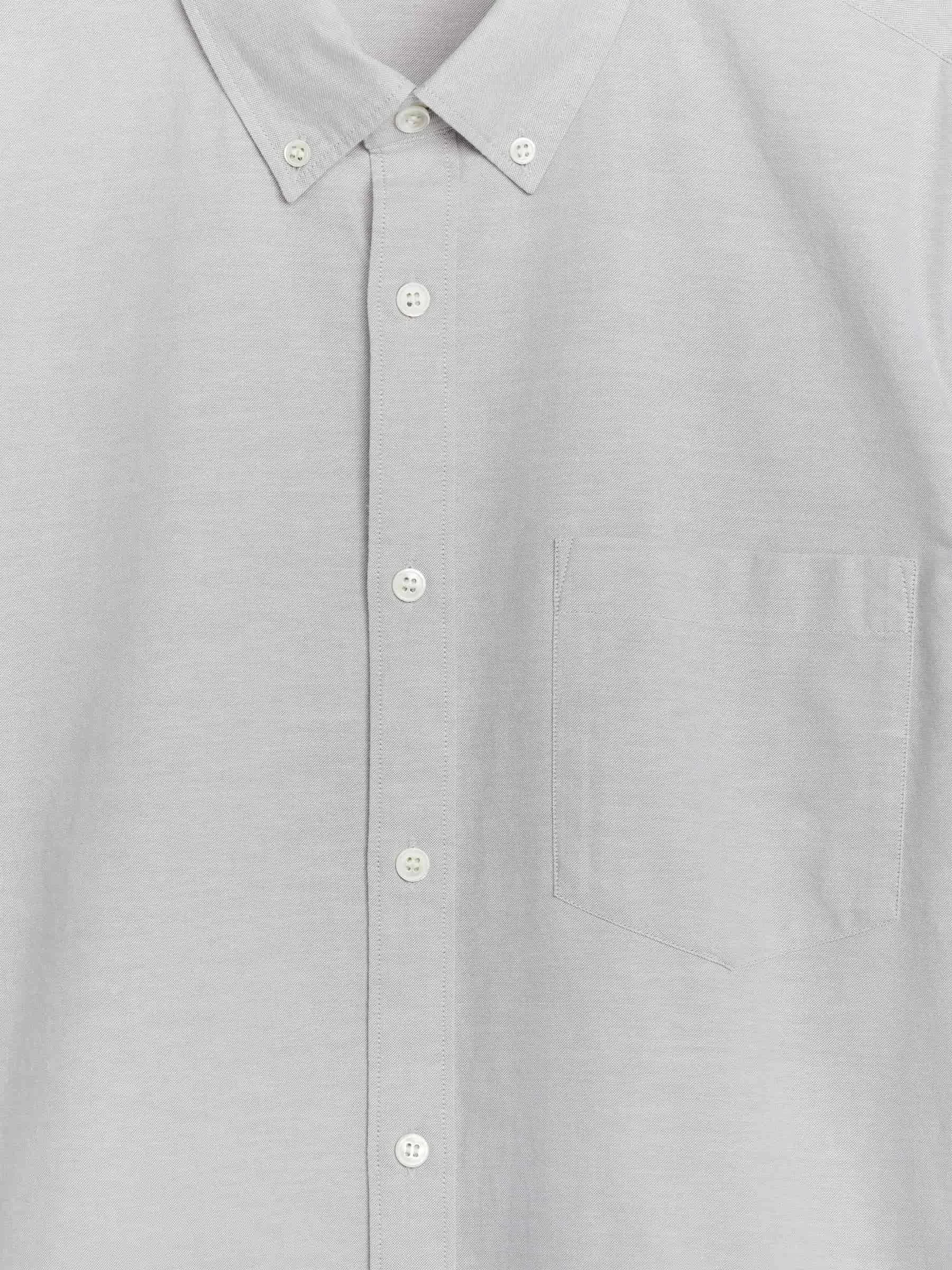 Dieses Hemd ist eines der archetypischen Designs von ARKET, ein normal geschnittenes Hemd mit Button-Down-Kragen. Diese Iteration ist aus einem Oxford-Gewebe genäht. Ein lässiger Stil mit normaler Knopfleiste vorne und einer Brusttasche. Abgerundeter Saum.