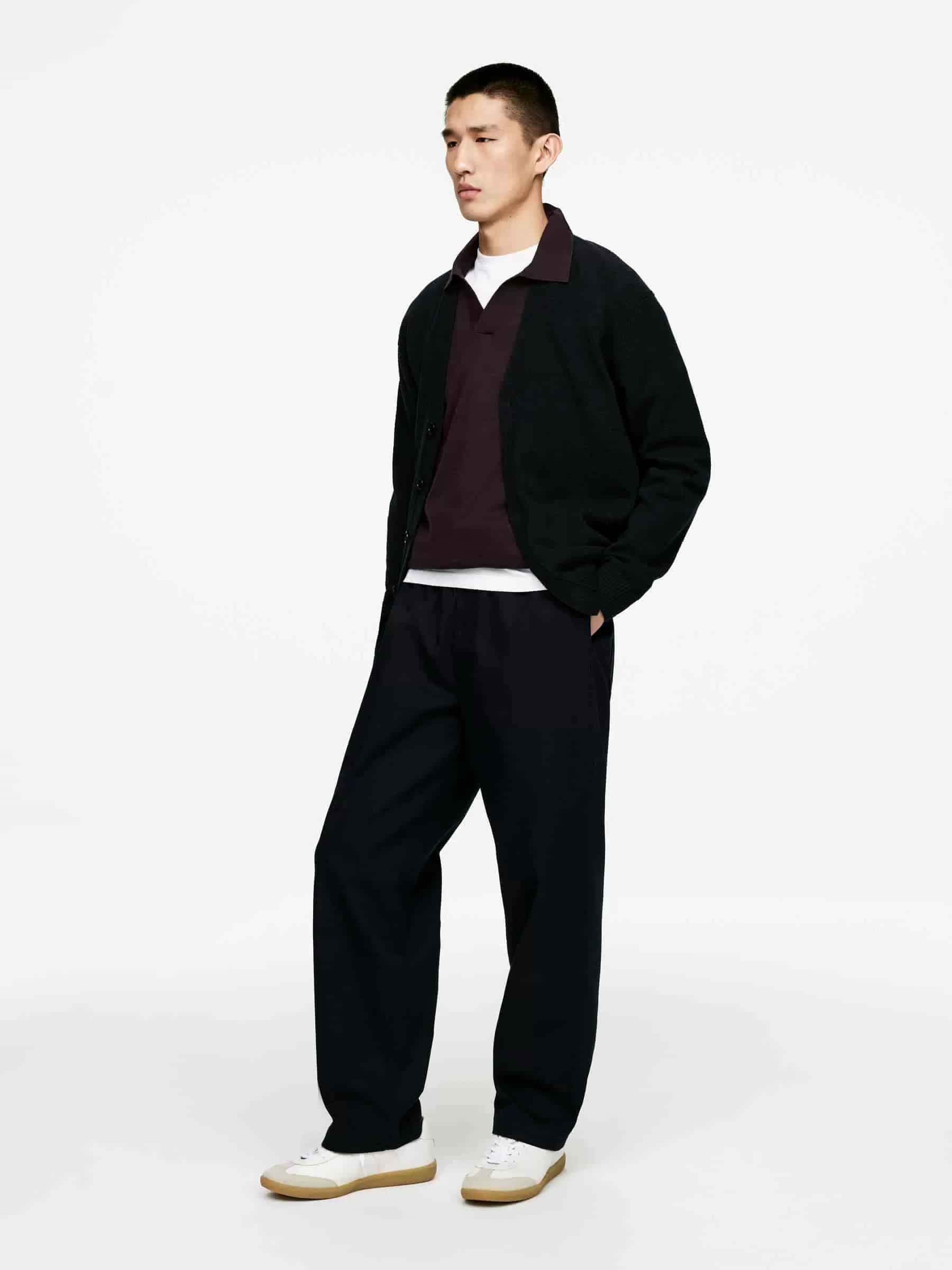 Die Mischung aus Leinen und Baumwolle verleiht diesem Feinstrick-Poloshirt einen weichen, kühlenden Tragekomfort. Ein lässiger Kurzarmstil mit Rippstrickkragen und V-Ausschnitt. Normale Passform.
