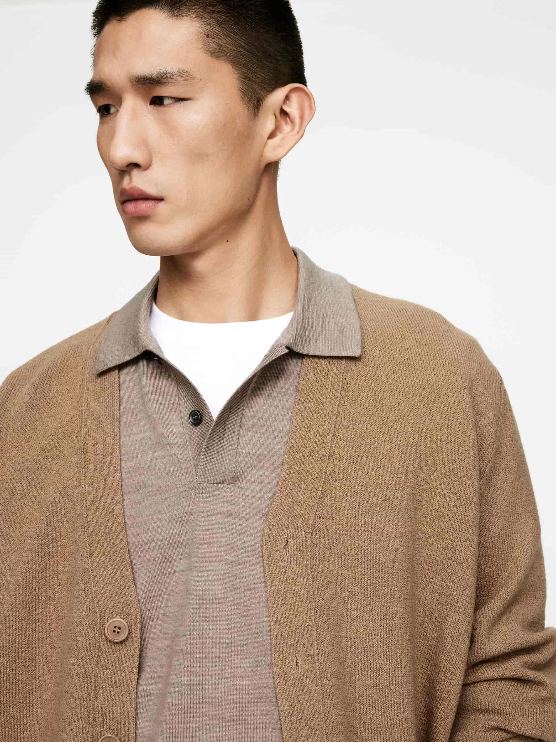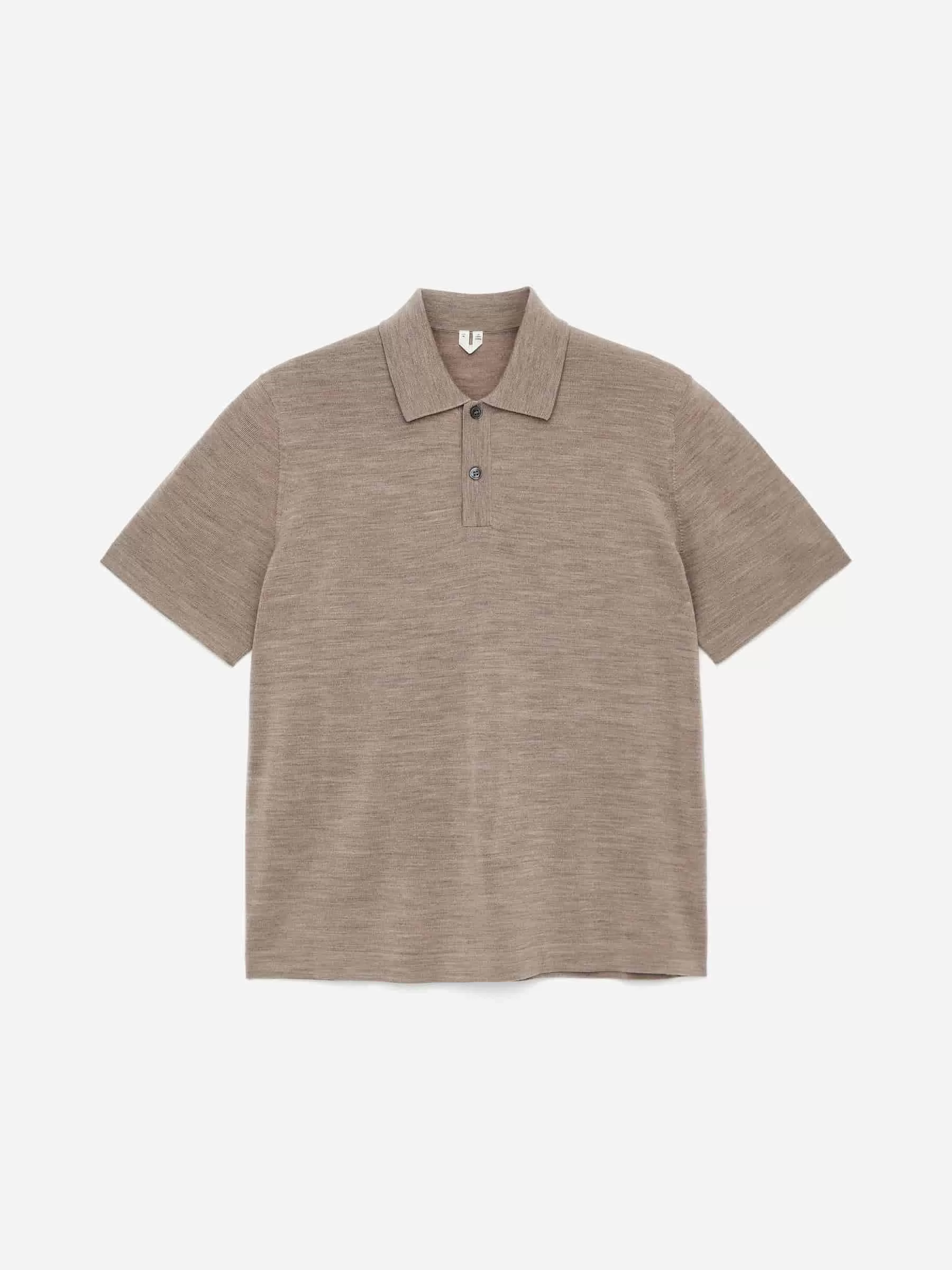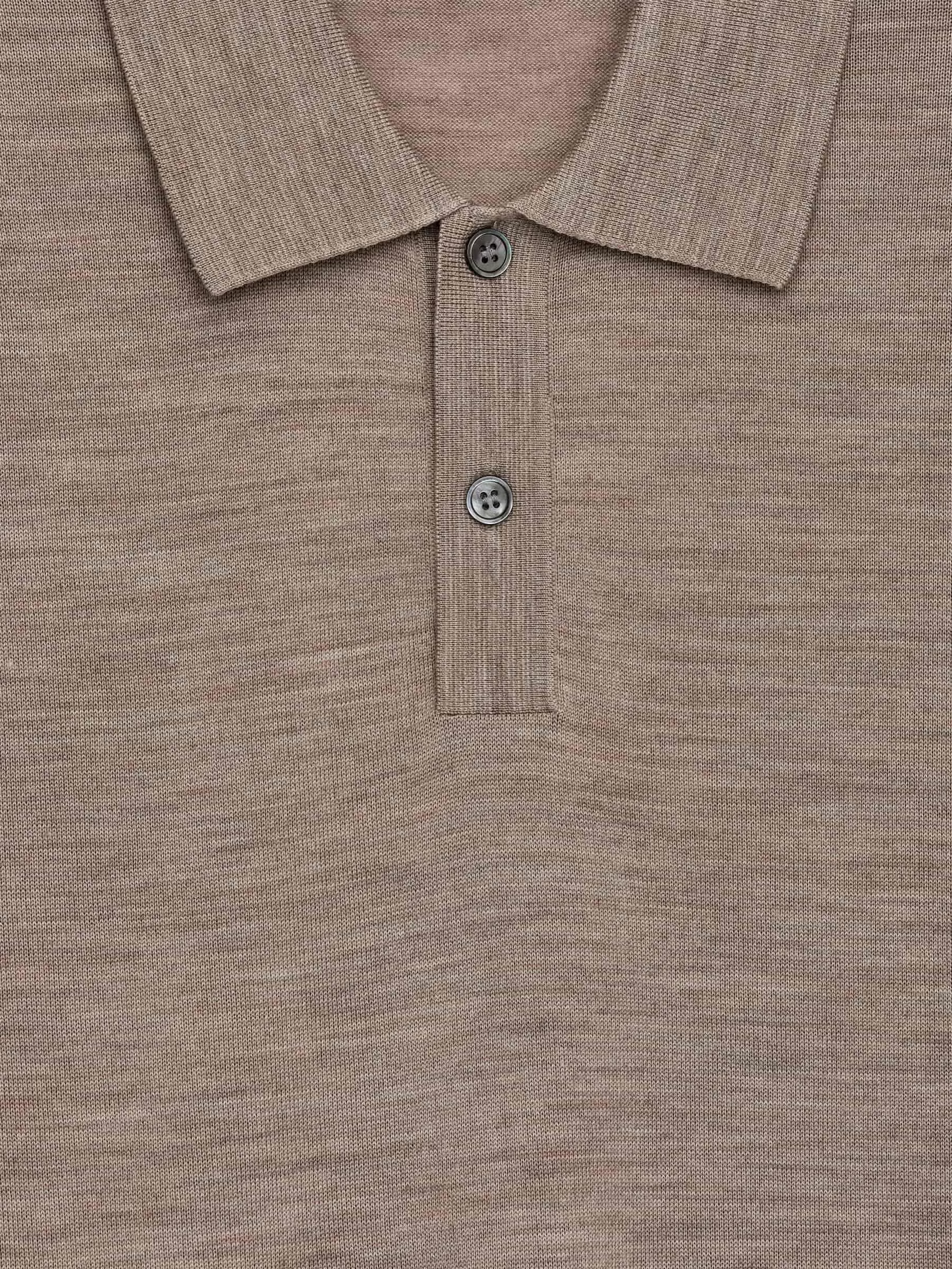 Feinstrick-Poloshirt aus Wolle. Ein Kurzarmmodell mit einem Kragen aus Voll-Milano-Strick und einer Knopfleiste mit zwei Knöpfen. Das Produkt enthält 100 % RWS-Wolle (TE-00047206). Produkte, die nach dem Responsible Wool Standard (RWS) zertifiziert sind, enthalten Wollfasern von Farmen, die unabhängig nach Tierschutz- und Landbewirtschaftungsanforderungen zertifiziert sind.