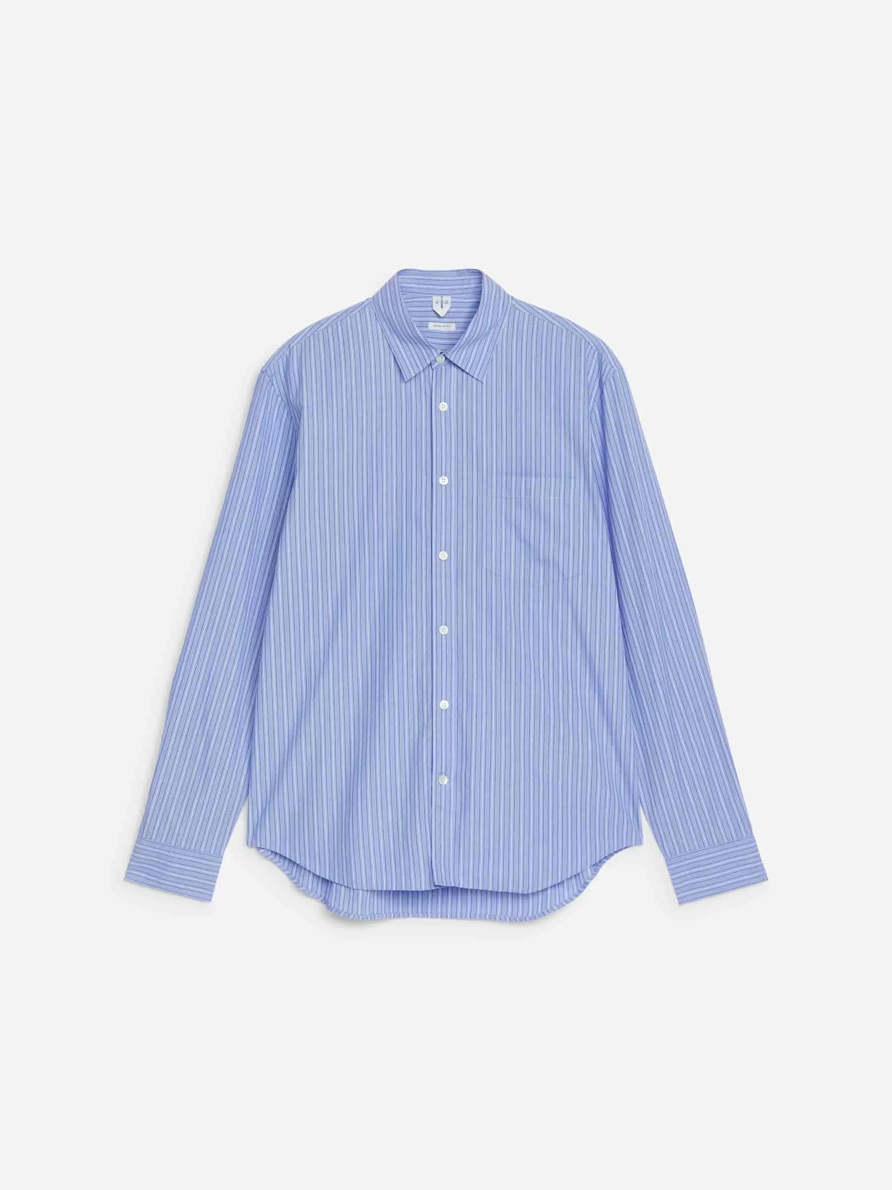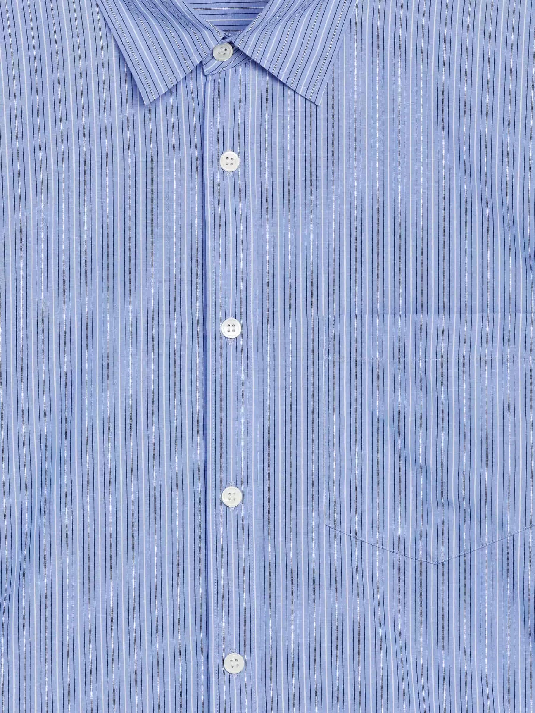 Hemd aus frischer Baumwollpopeline. Im regulären Schnitt geschnitten, mit normalem Kragen und einer einzelnen Brusttasche. Geknöpfte Manschetten. Geschwungener Saum. Perlmuttknöpfe, was bedeutet, dass dieses Produkt Material tierischen Ursprungs enthält.