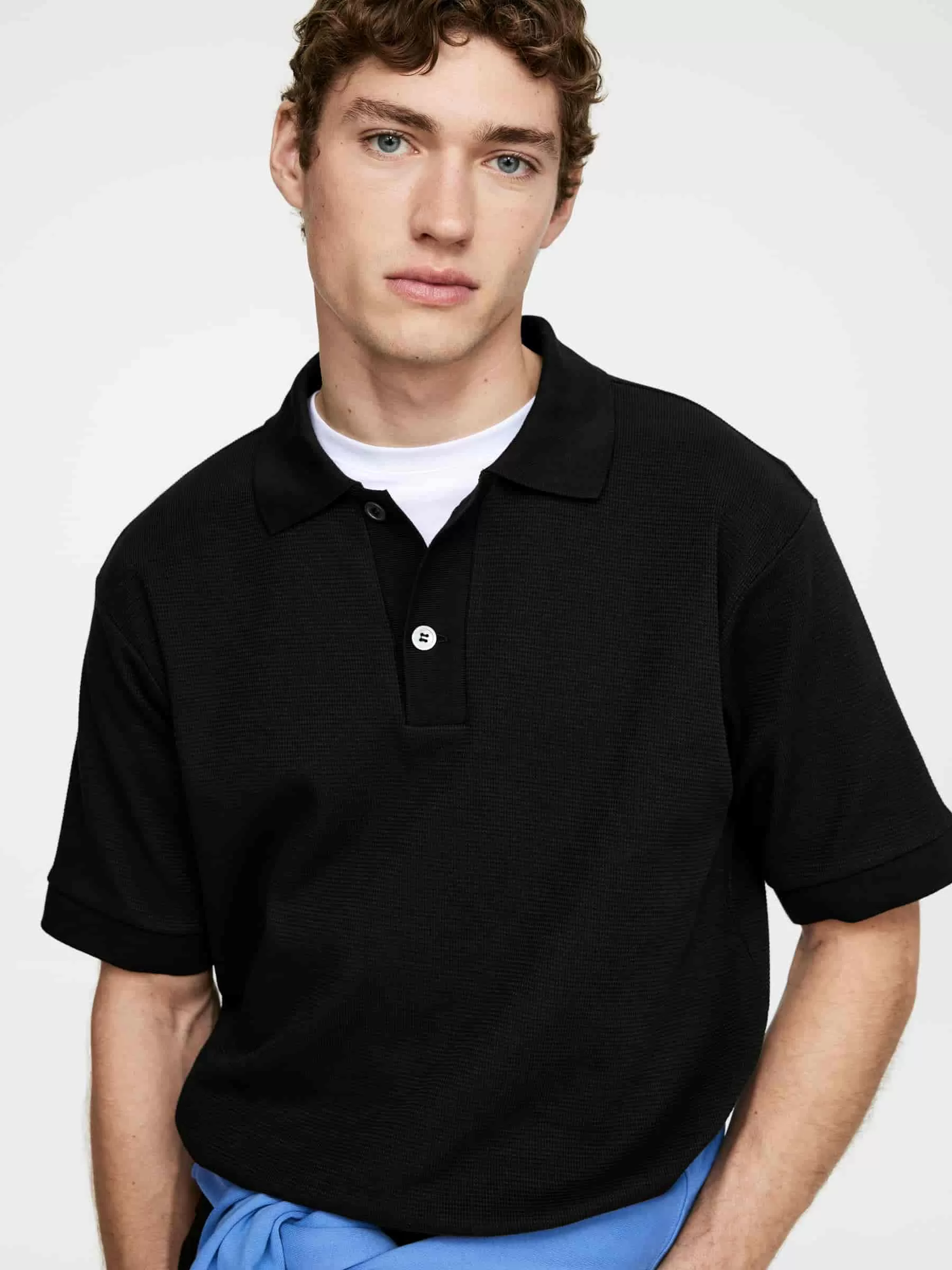 ARKE Herren Strukturiertes Poloshirt Schwarz