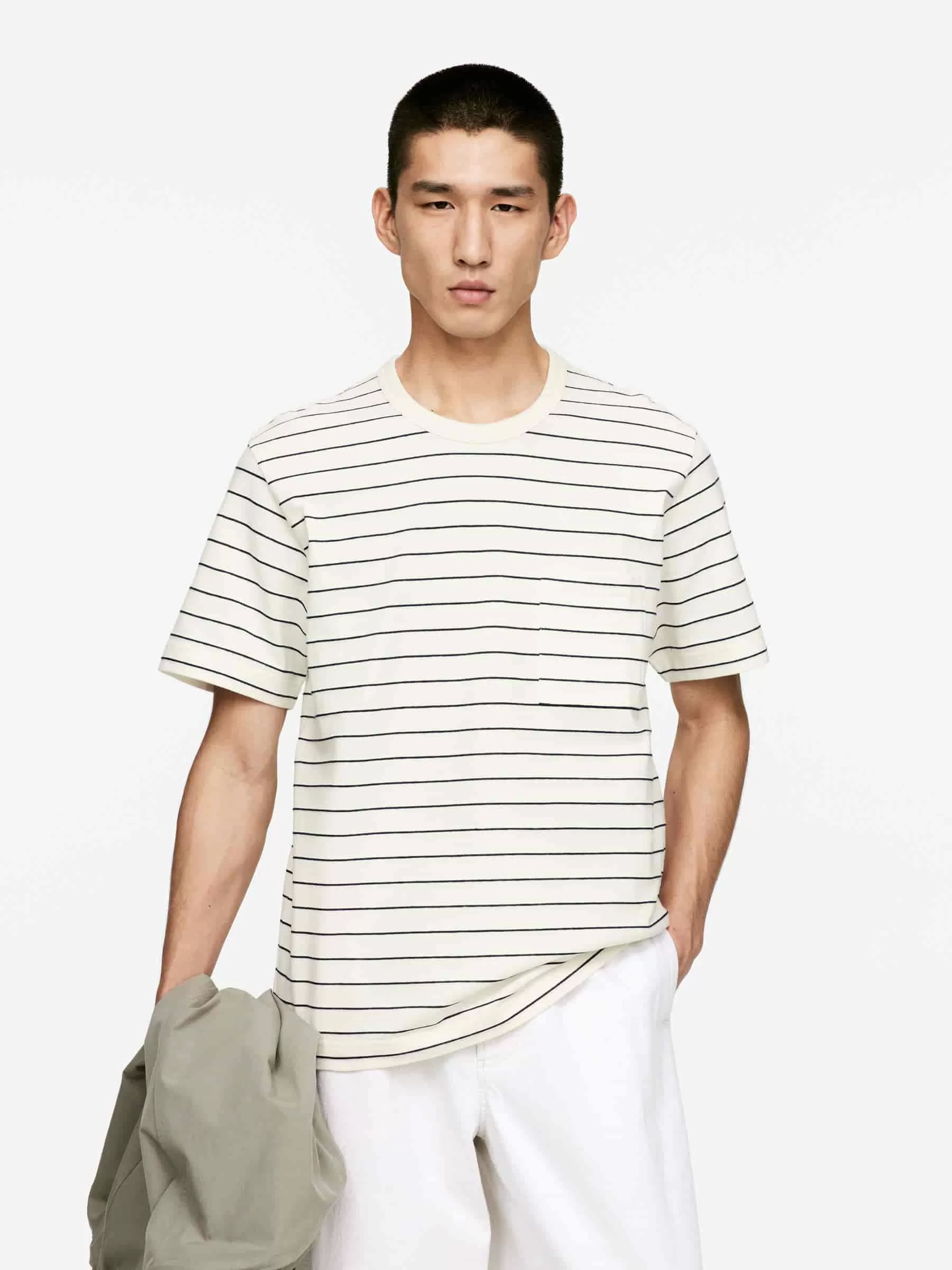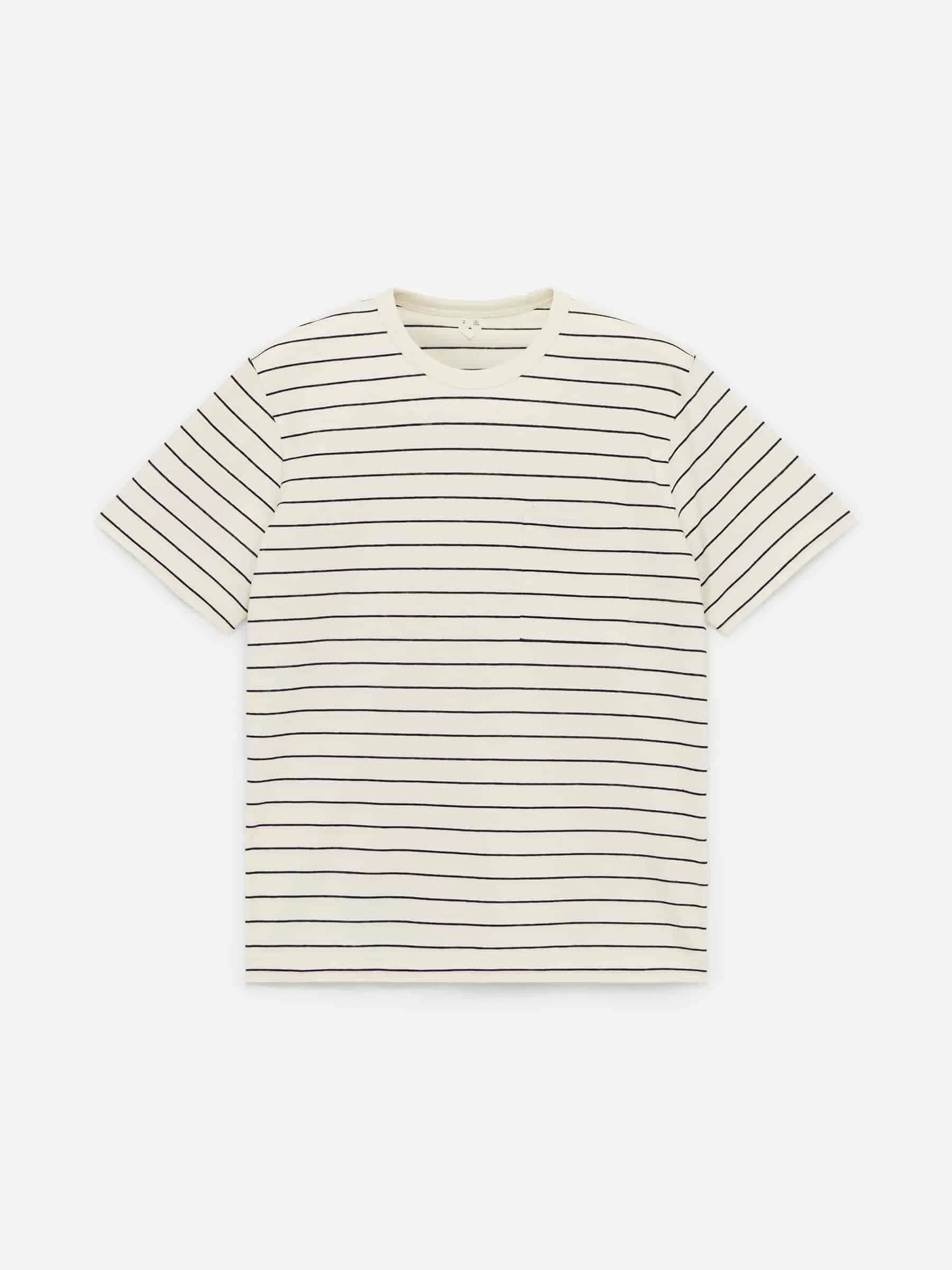 ARKE Herren T-Shirt aus Baumwollleinen Weiß/Dunkelblau
