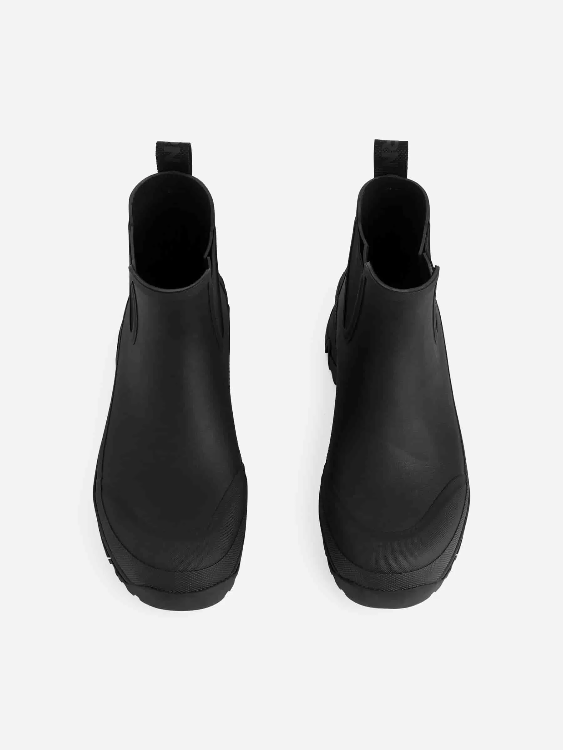 Wasserdichter Hybridstiefel aus FSC-zertifiziertem Naturkautschuk und einem schnell trocknenden Air-Mesh-Futter. Zuglaschen zum einfachen Anziehen. Metallschaft in der Zwischensohle und robustes Außensohlenmuster für große Stabilität.