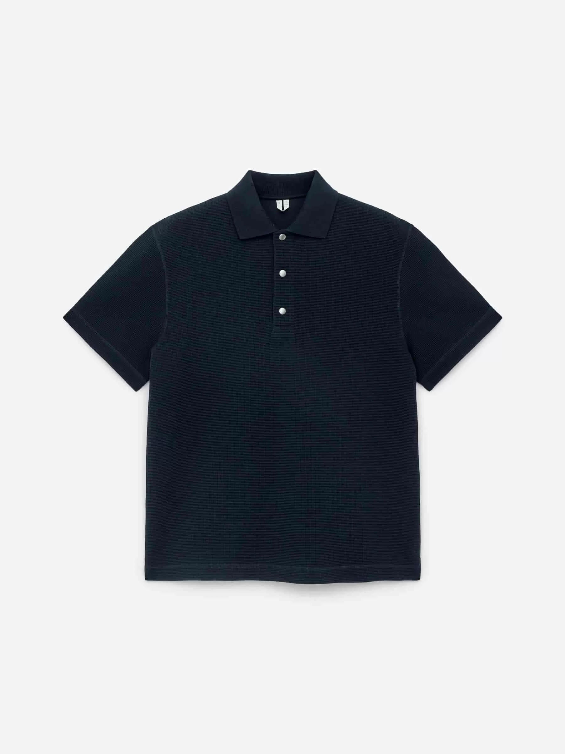 ARKE Herren Waffel-Poloshirt Dunkelblau