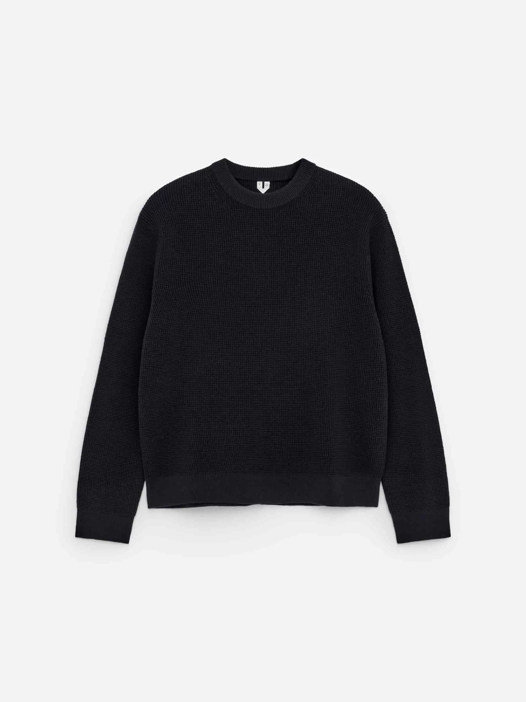 Pullover aus einer Baumwoll-Leinen-Mischung, gestrickt mit Waffelstruktur. Ein Rundhalsausschnitt in normaler Passform. Rippstrickbesätze.