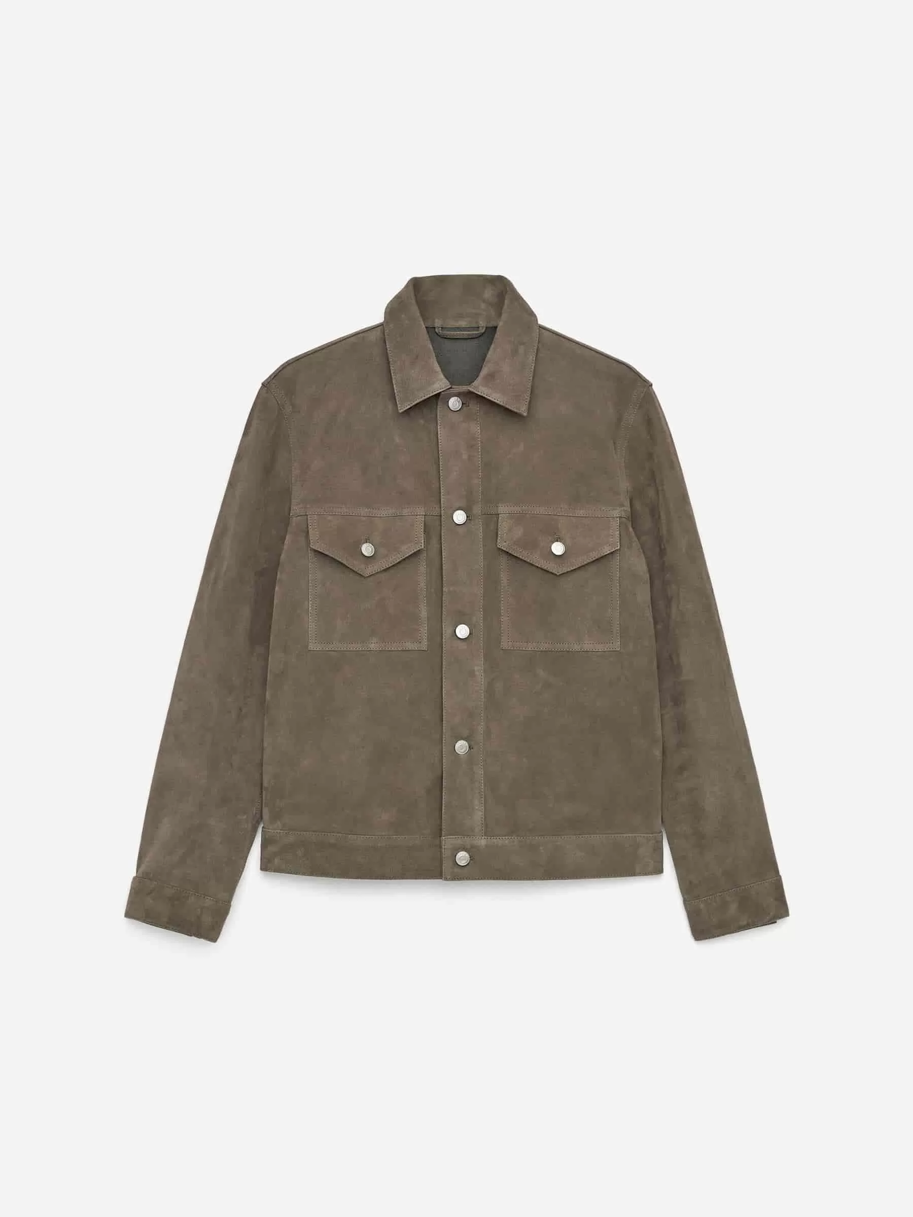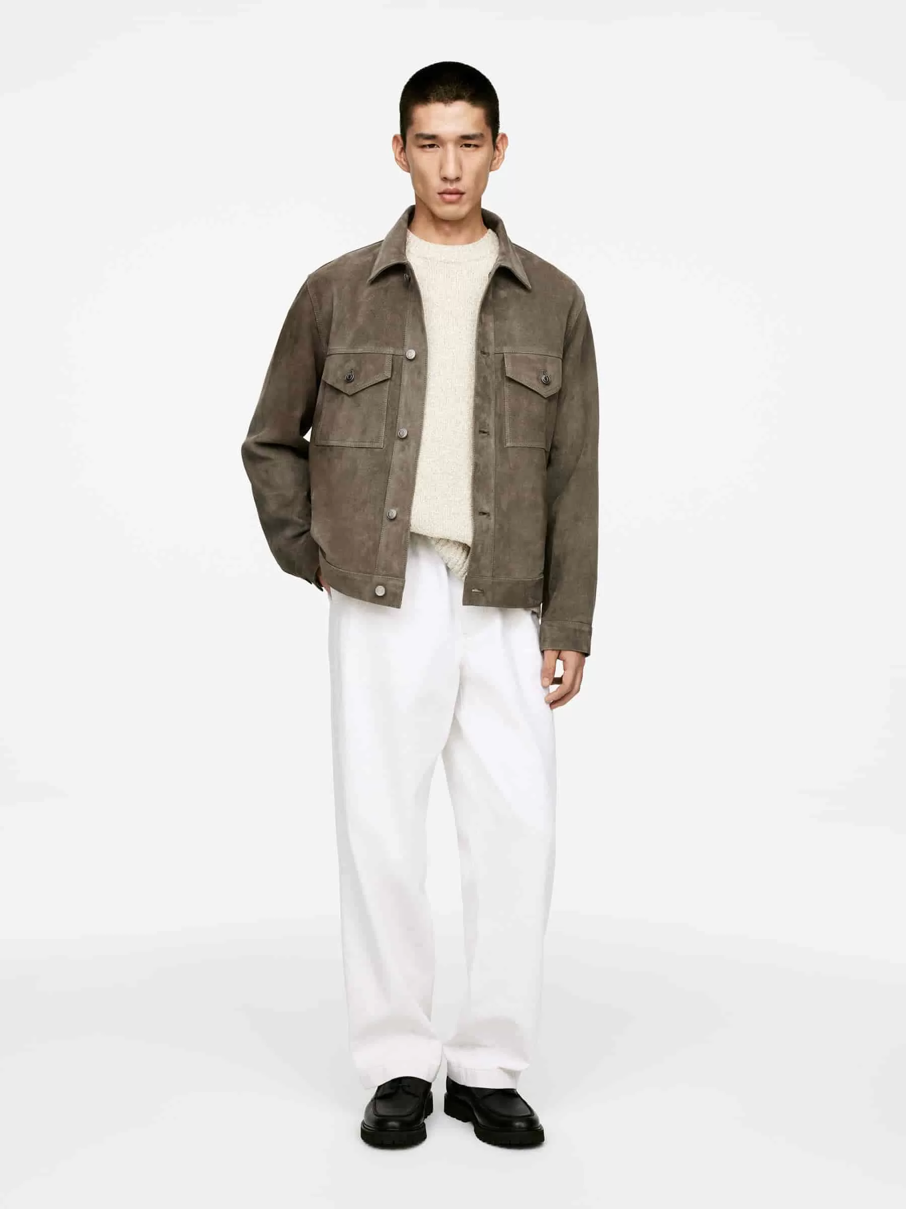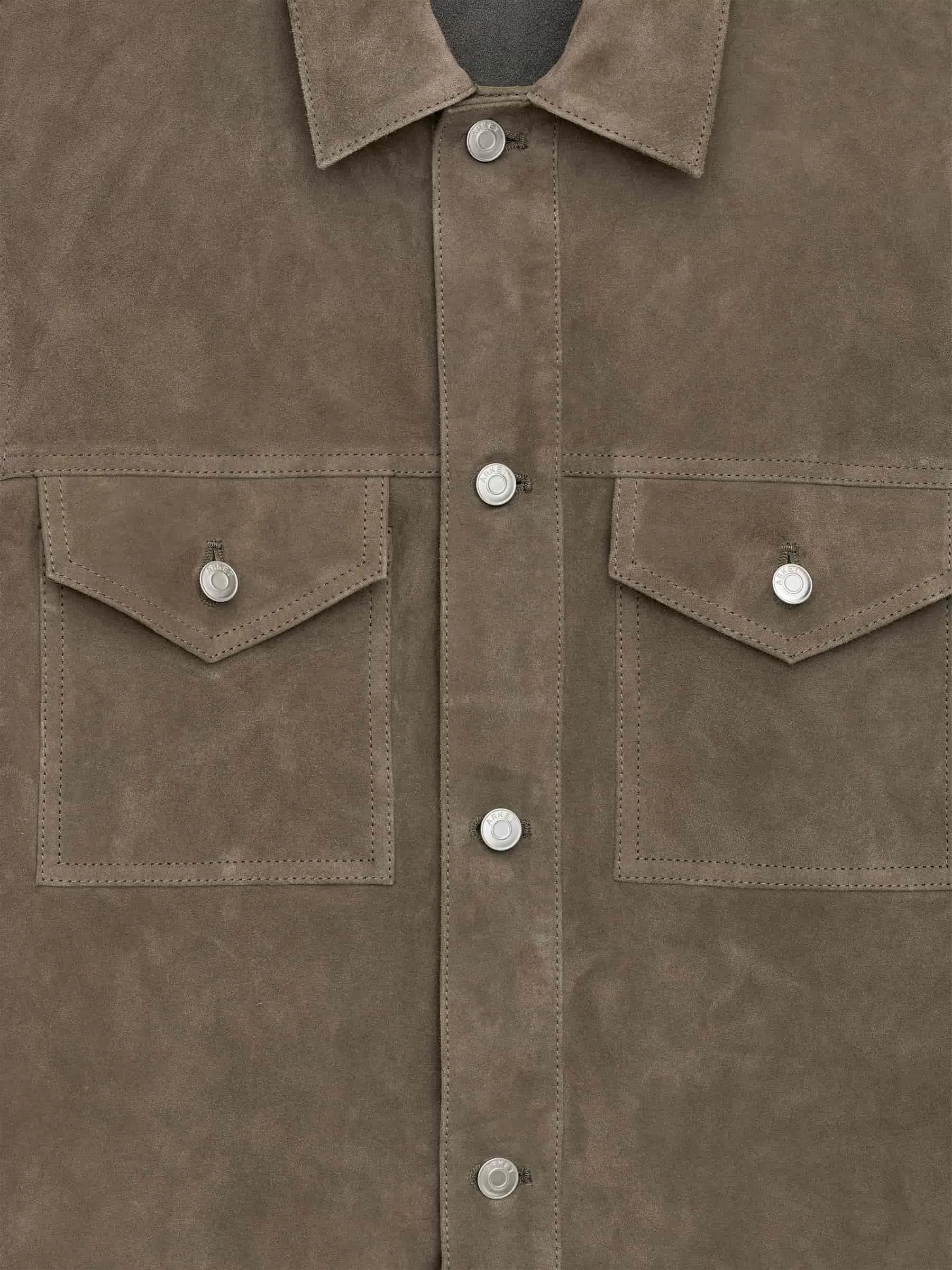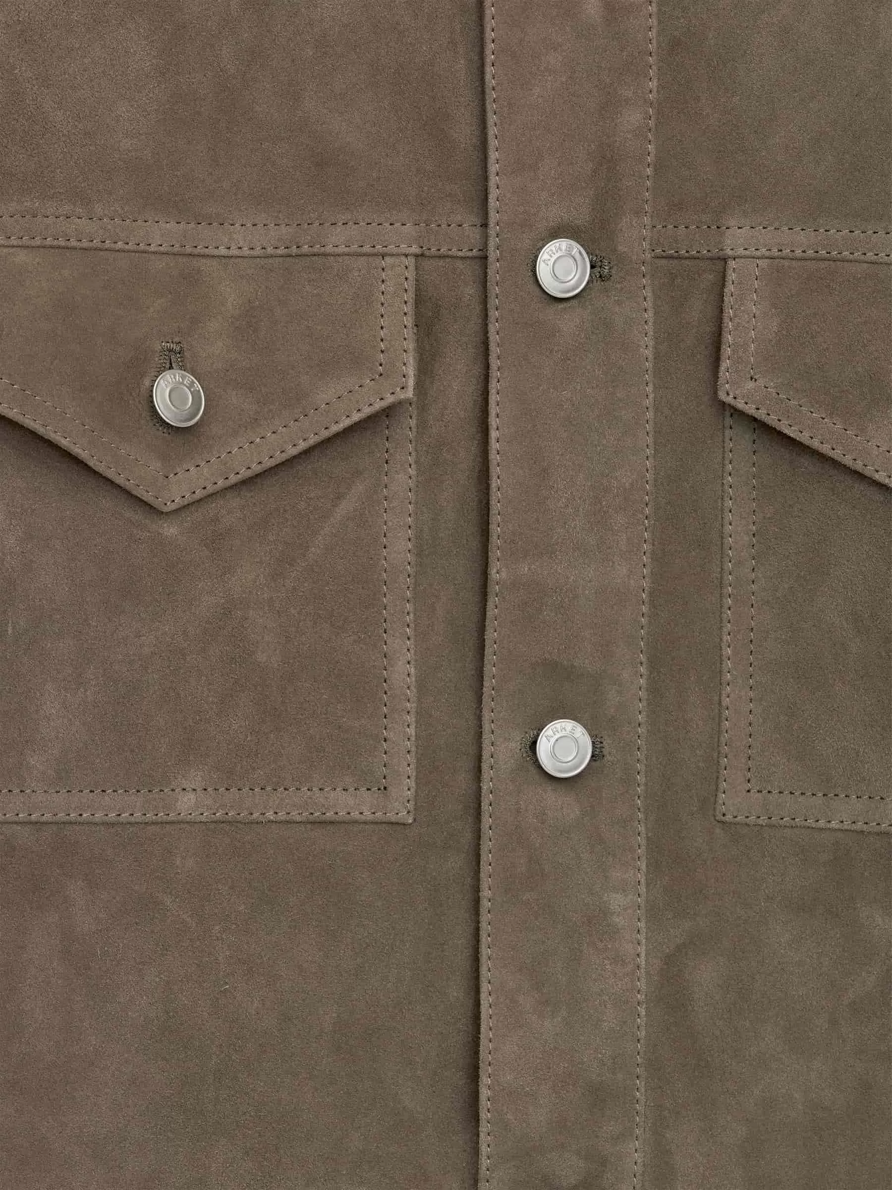 Jacke aus chromfreiem Wildleder. Mit Ösenknopfverschluss, Brusttaschen und geknöpften Schlitzen. Normale Passform.