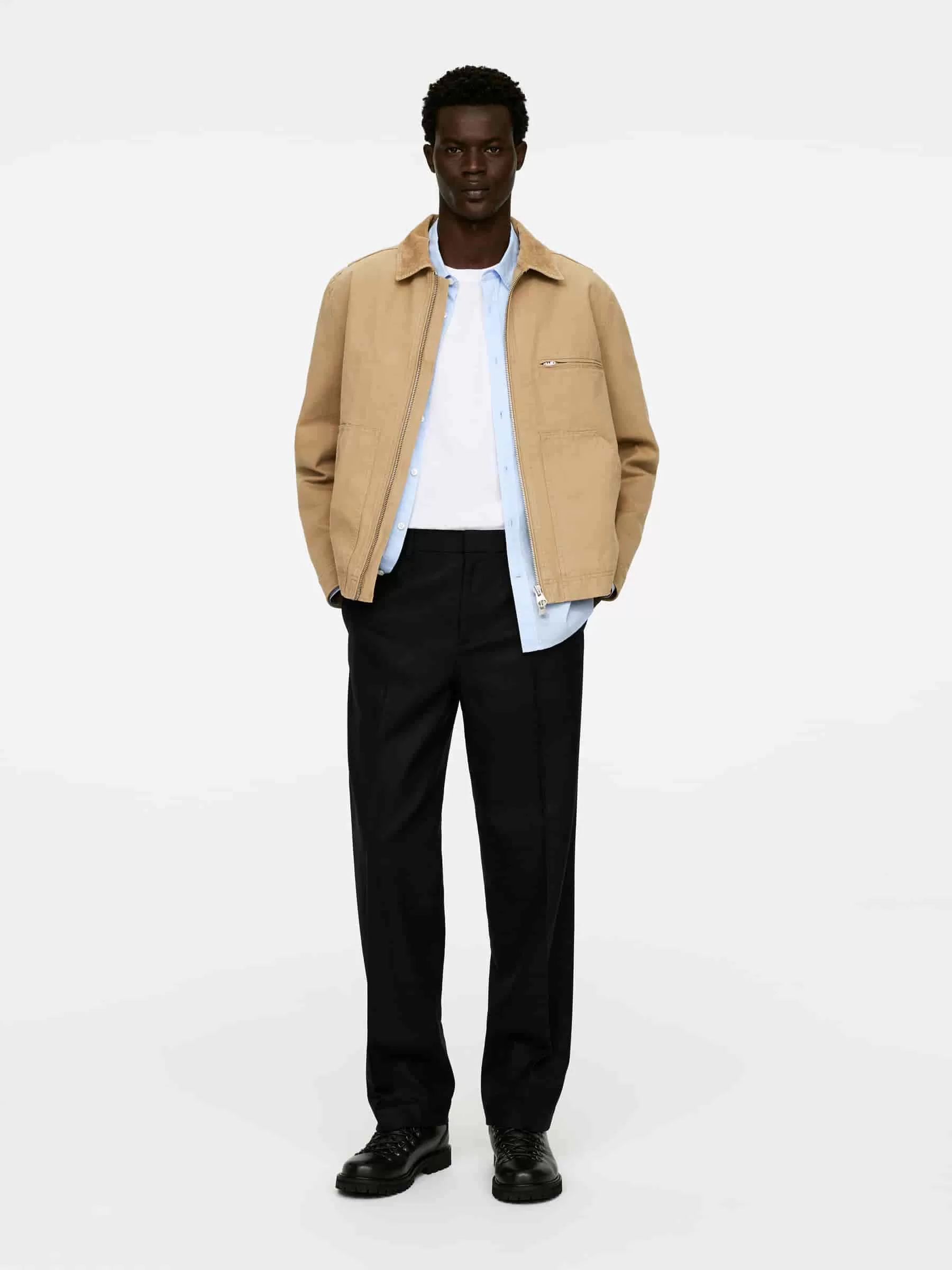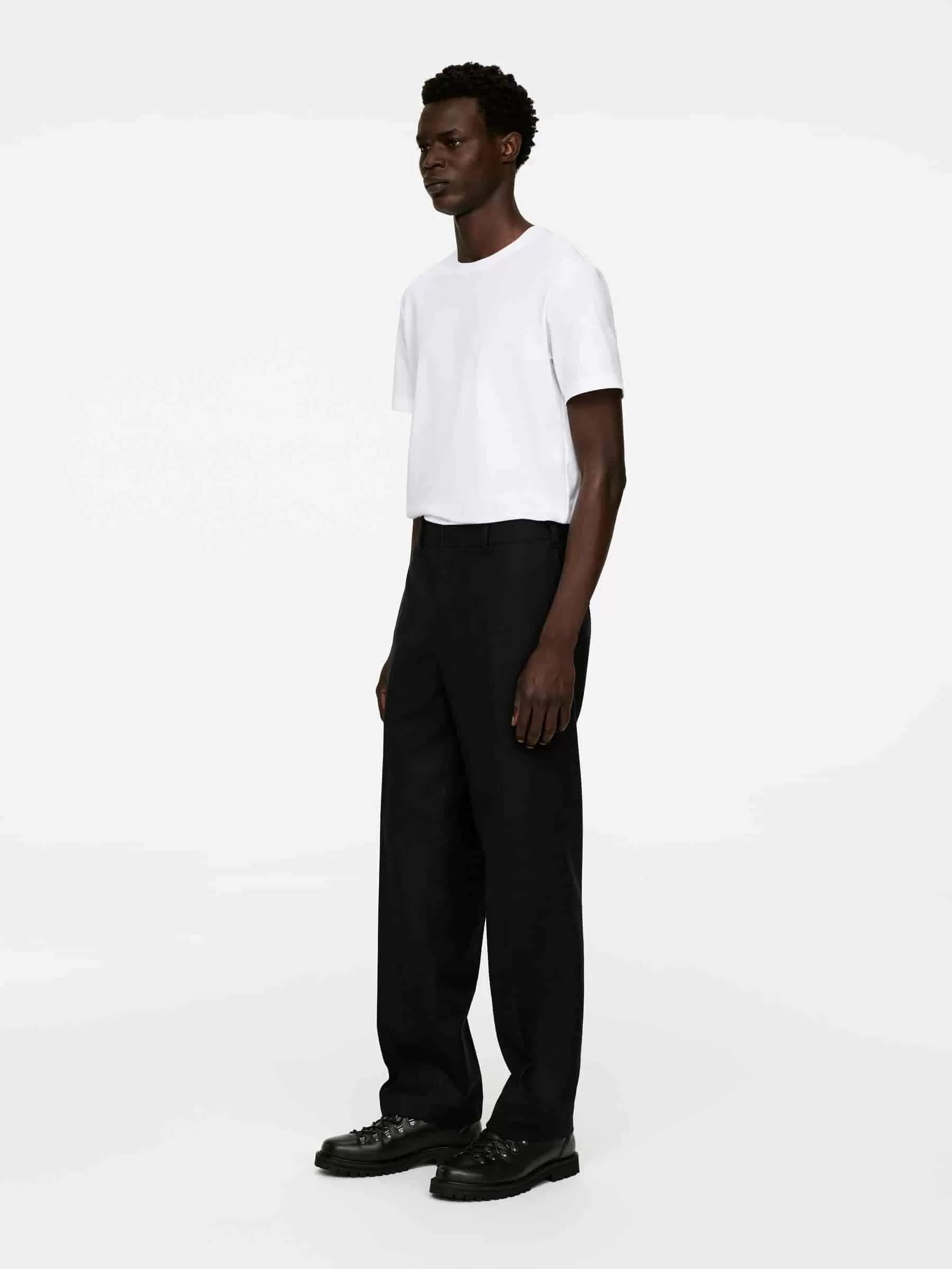 Hose aus RWS-Wolle. Im regulären Schnitt mit Bügelfalten, Taschen an den Seitennähten und zwei Paspeltaschen hinten. Bund mit Gürtelschlaufen, Klettverschluss und Reißverschluss im Hosenschlitz. Das Produkt enthält 100 % RWS-Wolle (TE-00047206). Produkte, die nach dem Responsible Wool Standard (RWS) zertifiziert sind, enthalten Wollfasern von Farmen, die unabhängig nach Tierschutz- und Landbewirtschaftungsanforderungen zertifiziert sind.
