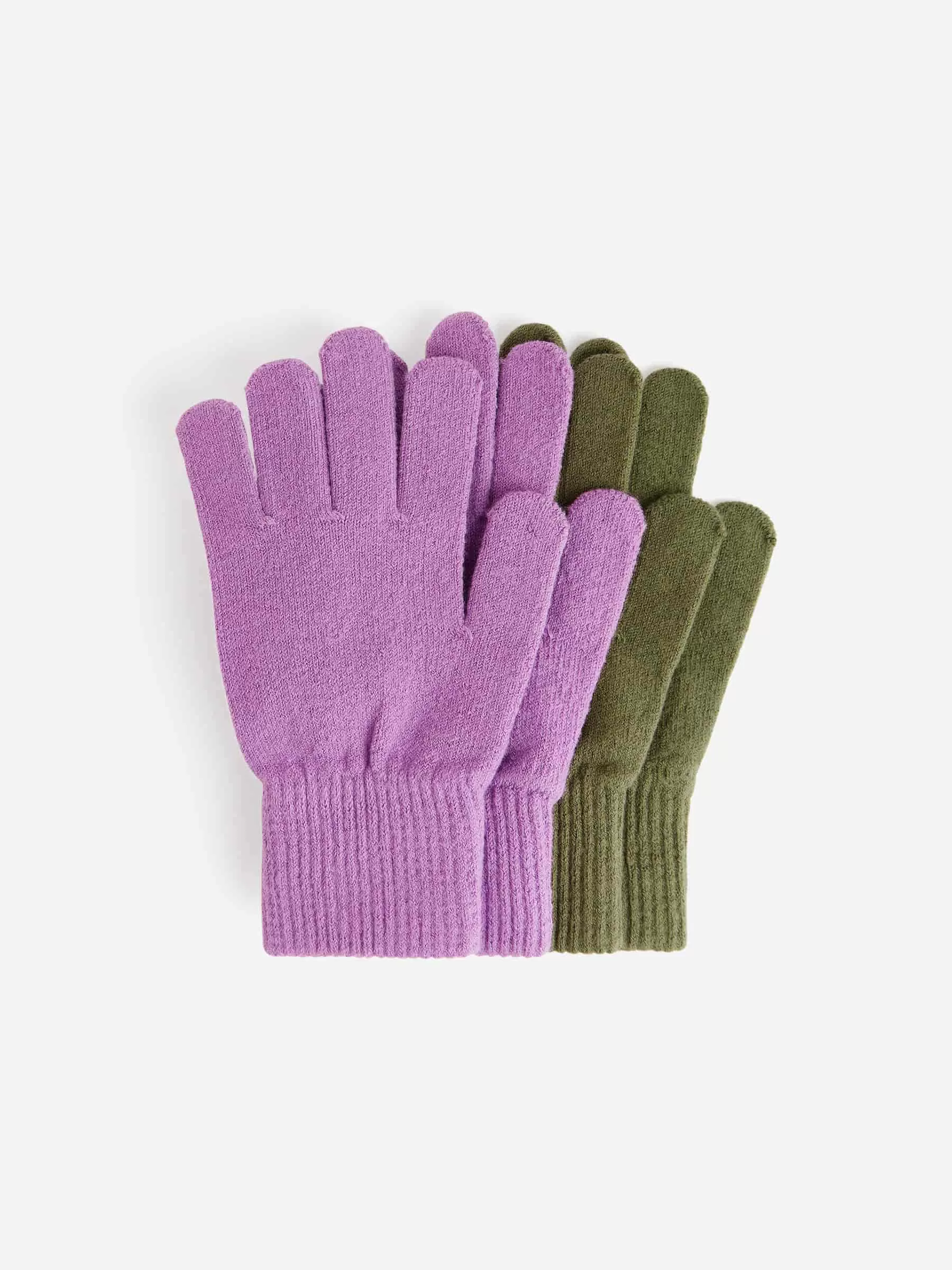 Handschuhe in Einheitsgröße, verkauft im praktischen 2er-Pack. Gestrickt aus einer weichen, dehnbaren Baumwollmischung, die nach jedem Waschen ihre Form behält. Gerippte Bündchen.