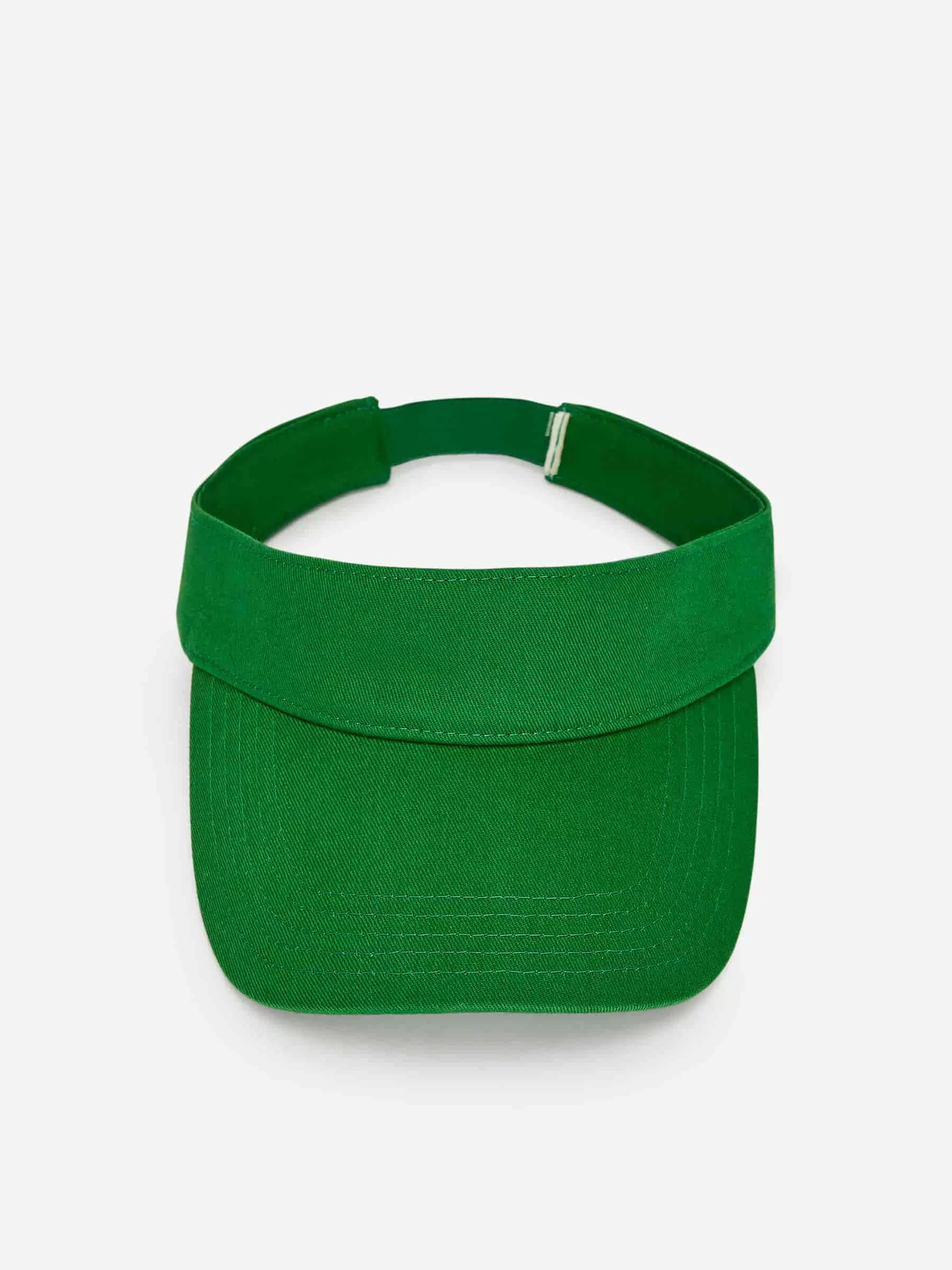 Sonnenblende aus Baumwolle. Mit verstellbarem Riemen und Metallschnalle hinten.