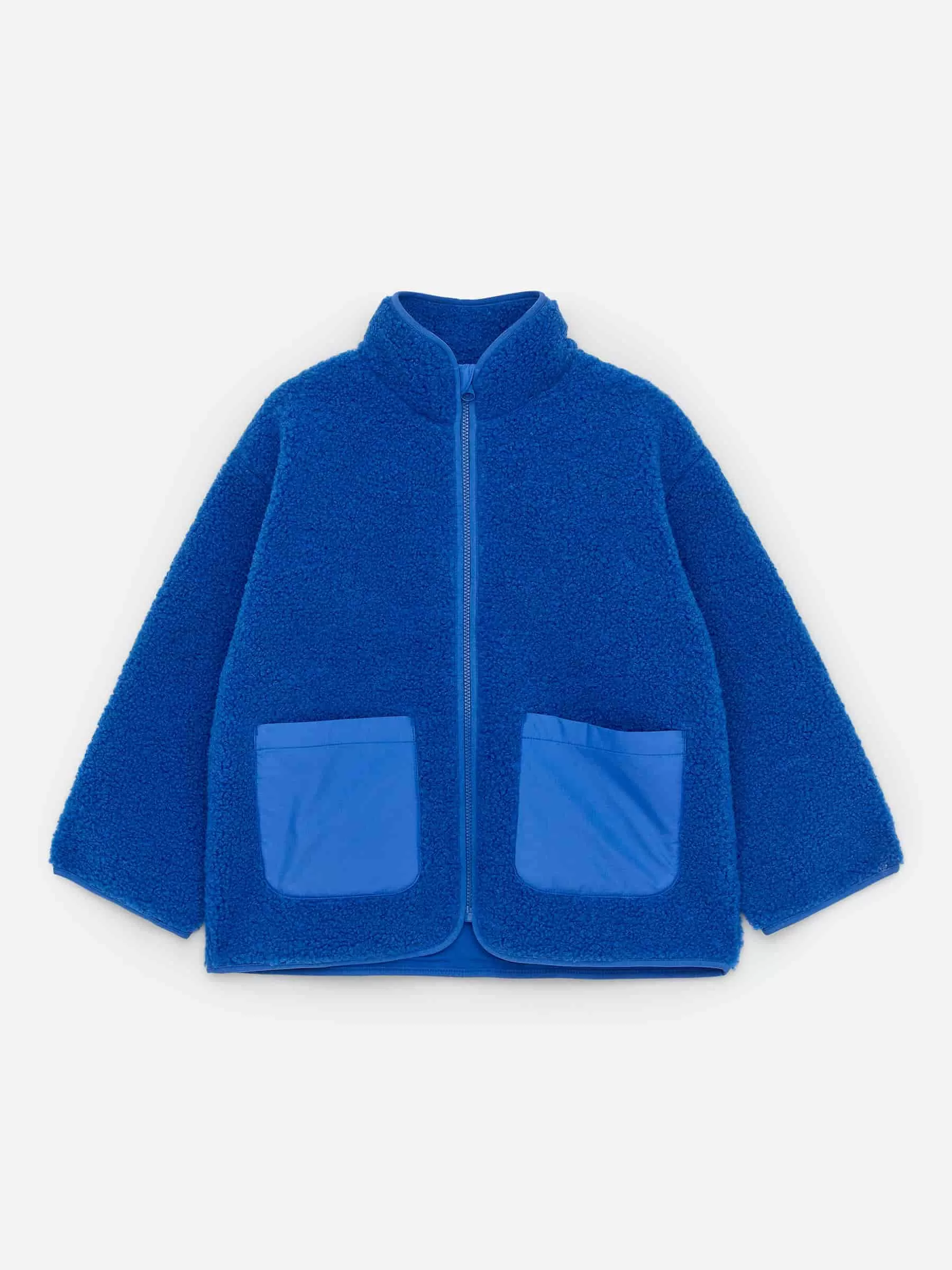 Florjacke mit überschnittenen Schultern, bequemem Stehkragen und aufgesetzten Nylontaschen. Normale Passform.