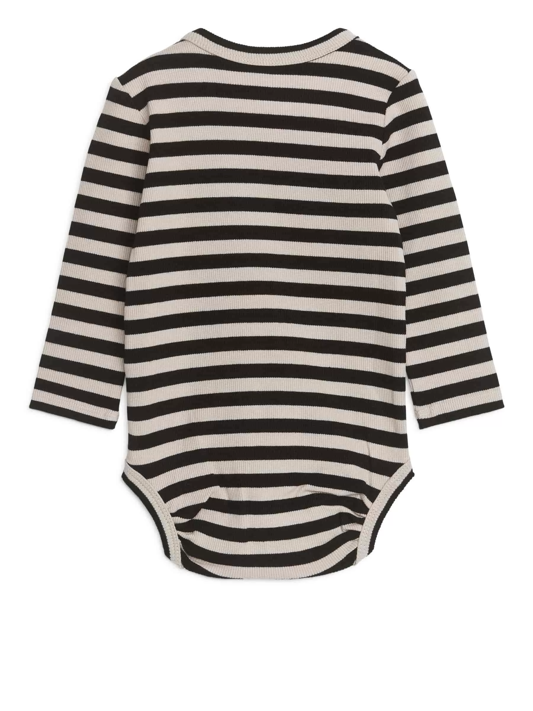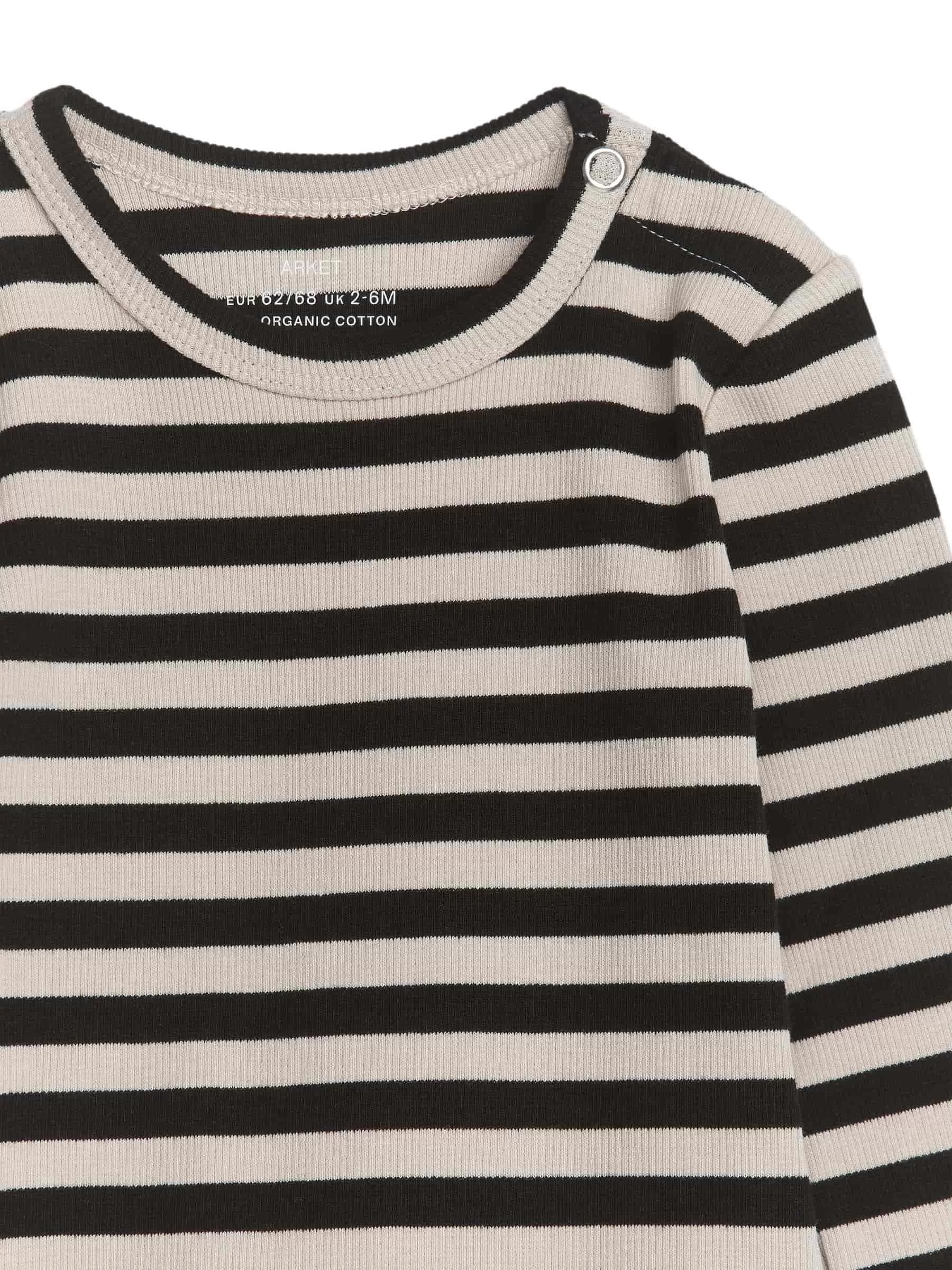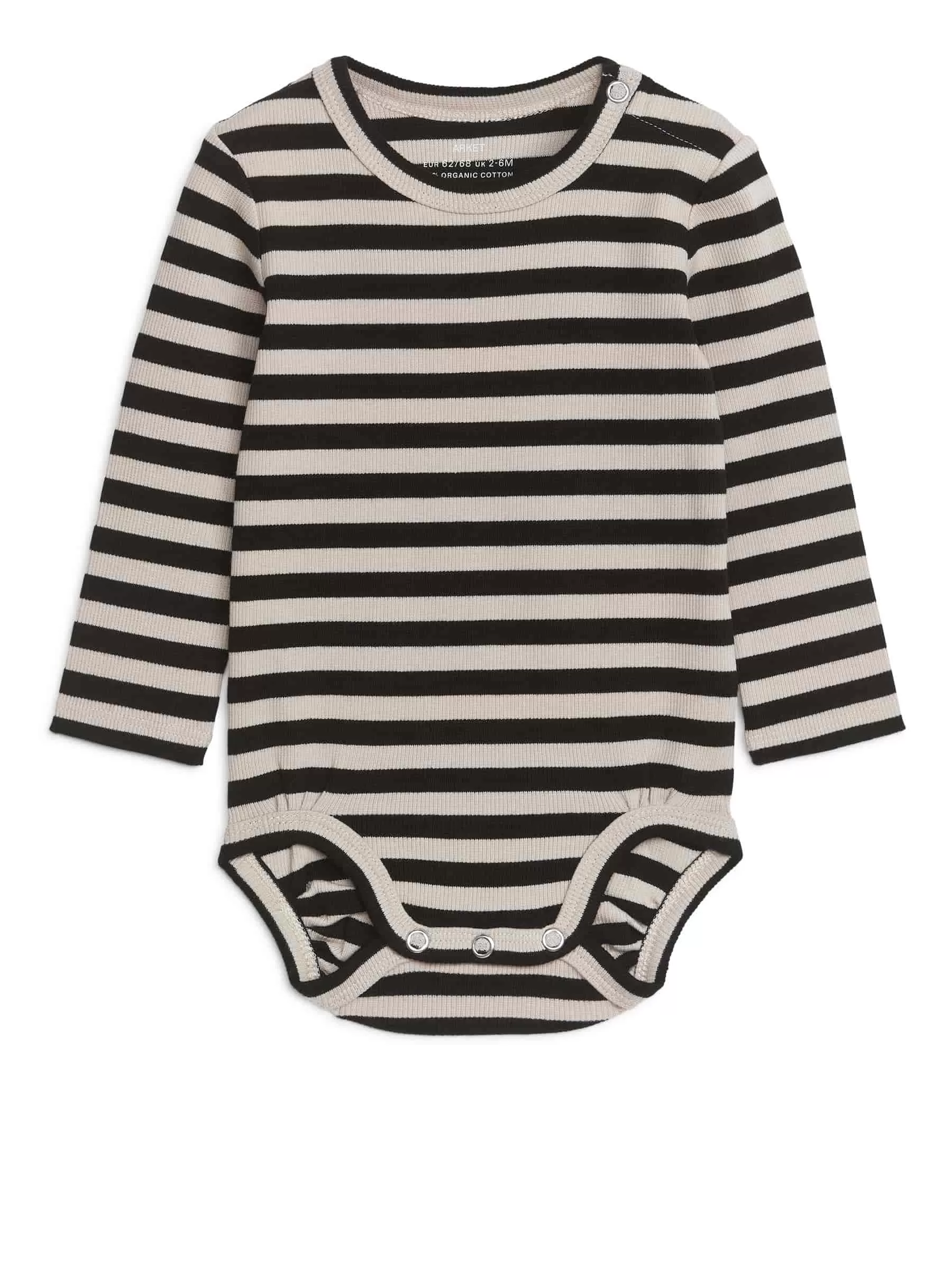 ARKE Kinder Gerippter Langarm-Body Schwarz/Beige
