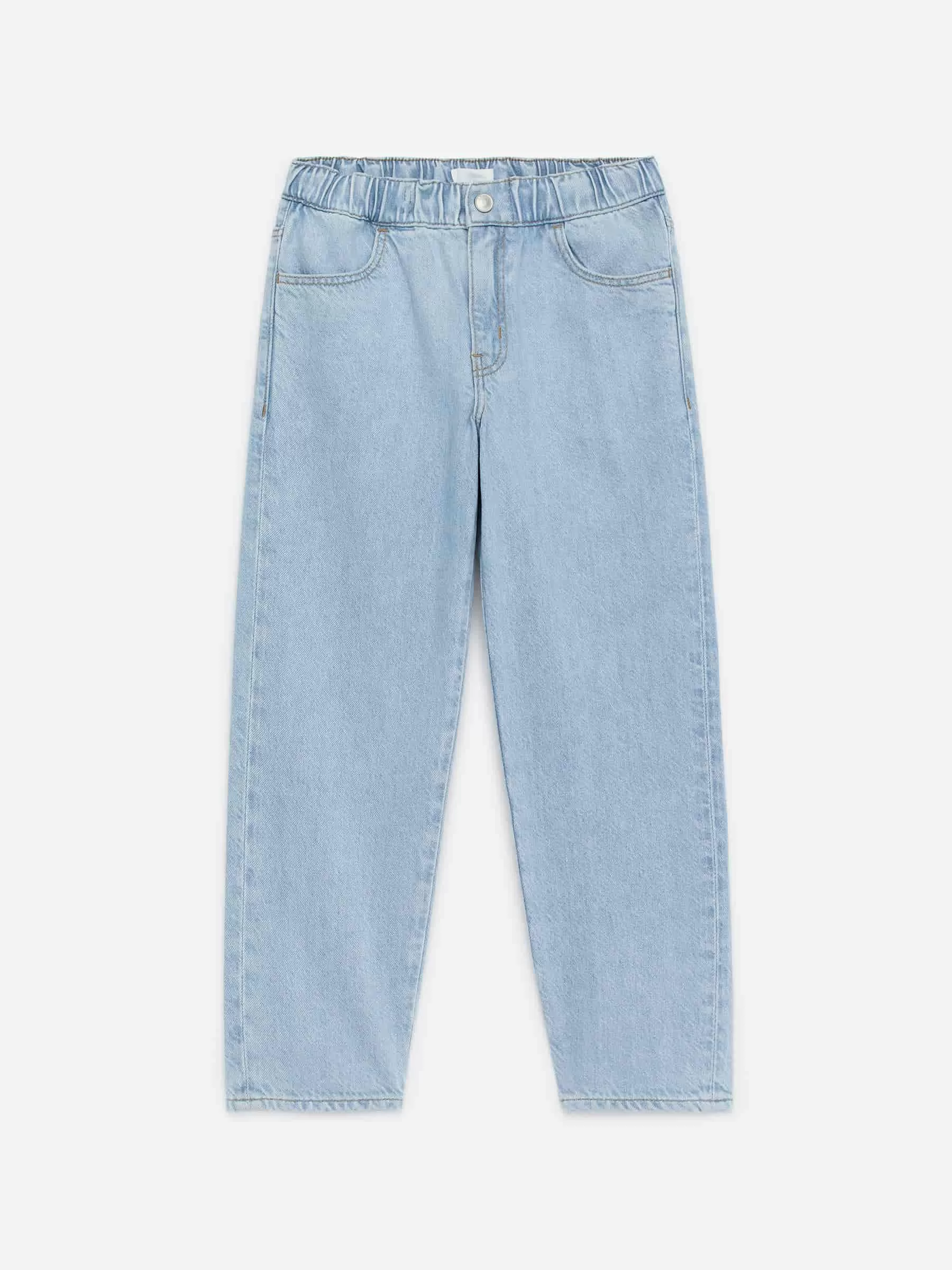 Pull-on-Jeans in weiter Passform mit geradem Bein. Elastischer Bund, Reißverschluss und Taschen vorne und hinten.
