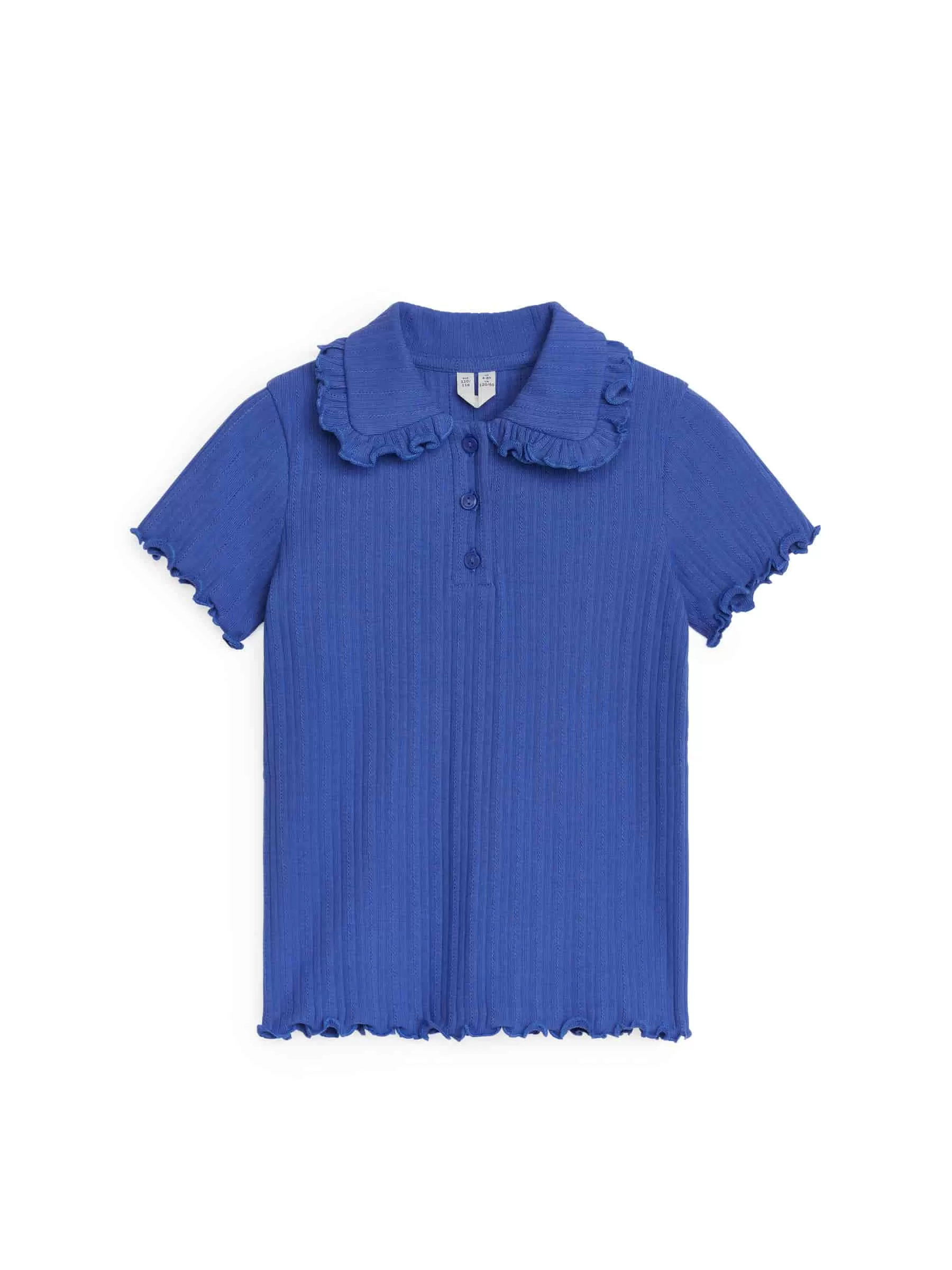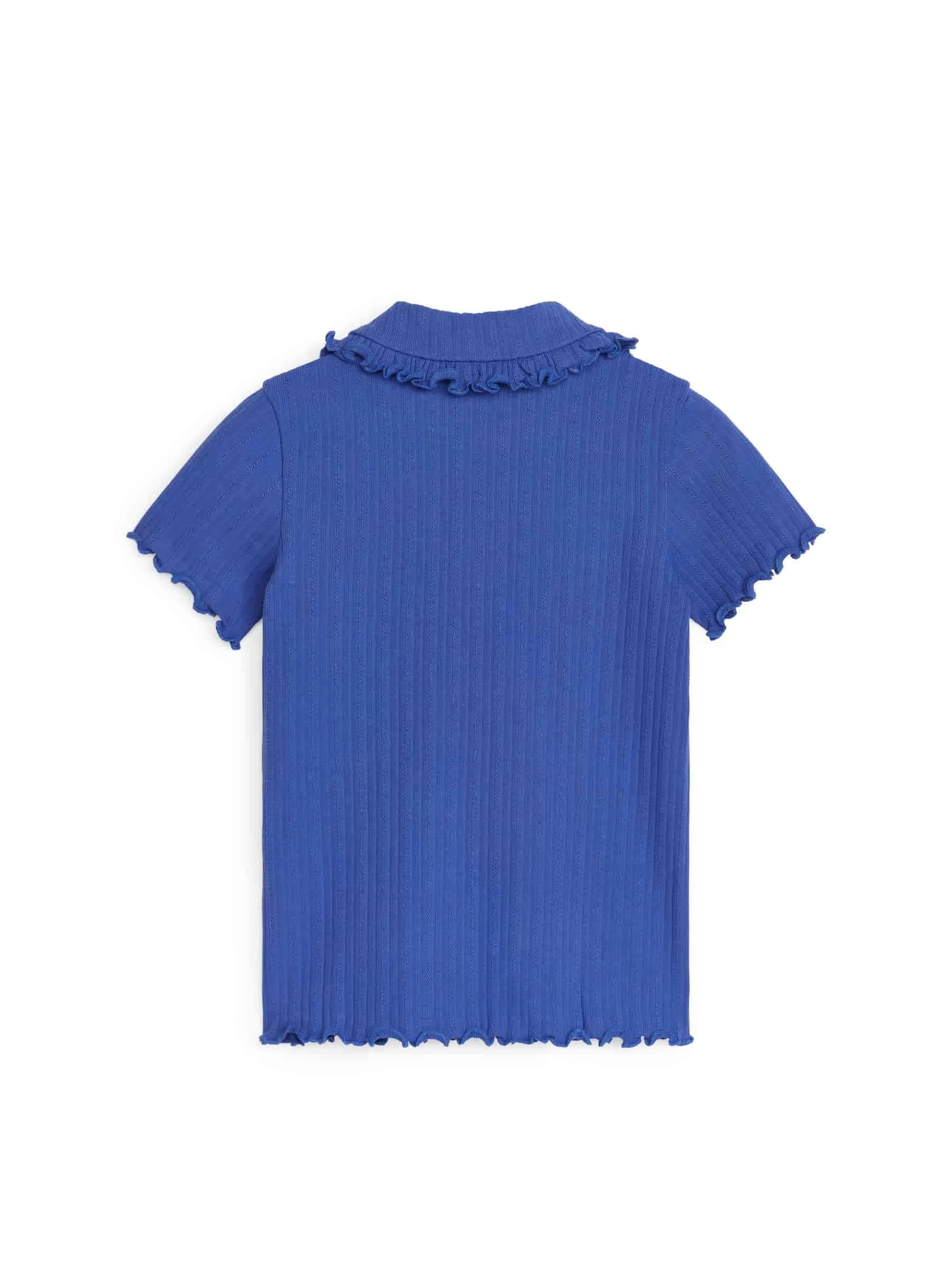 ARKE Kinder Oberteil aus geripptem Jersey mit Rüschenkragen Blau