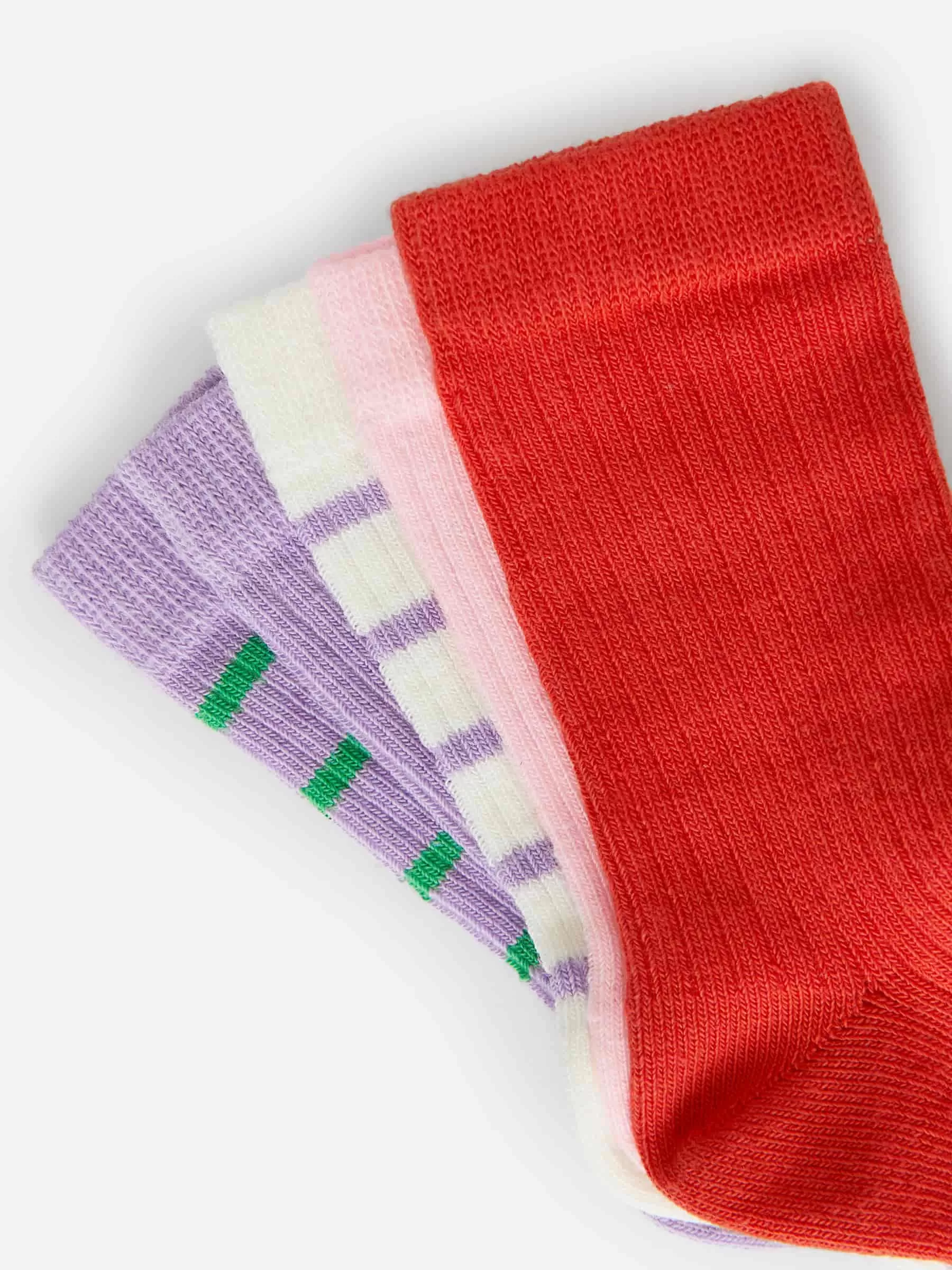 ARKE Kinder Rippstrick-Babysocken, 5 Paar Flieder/Rot