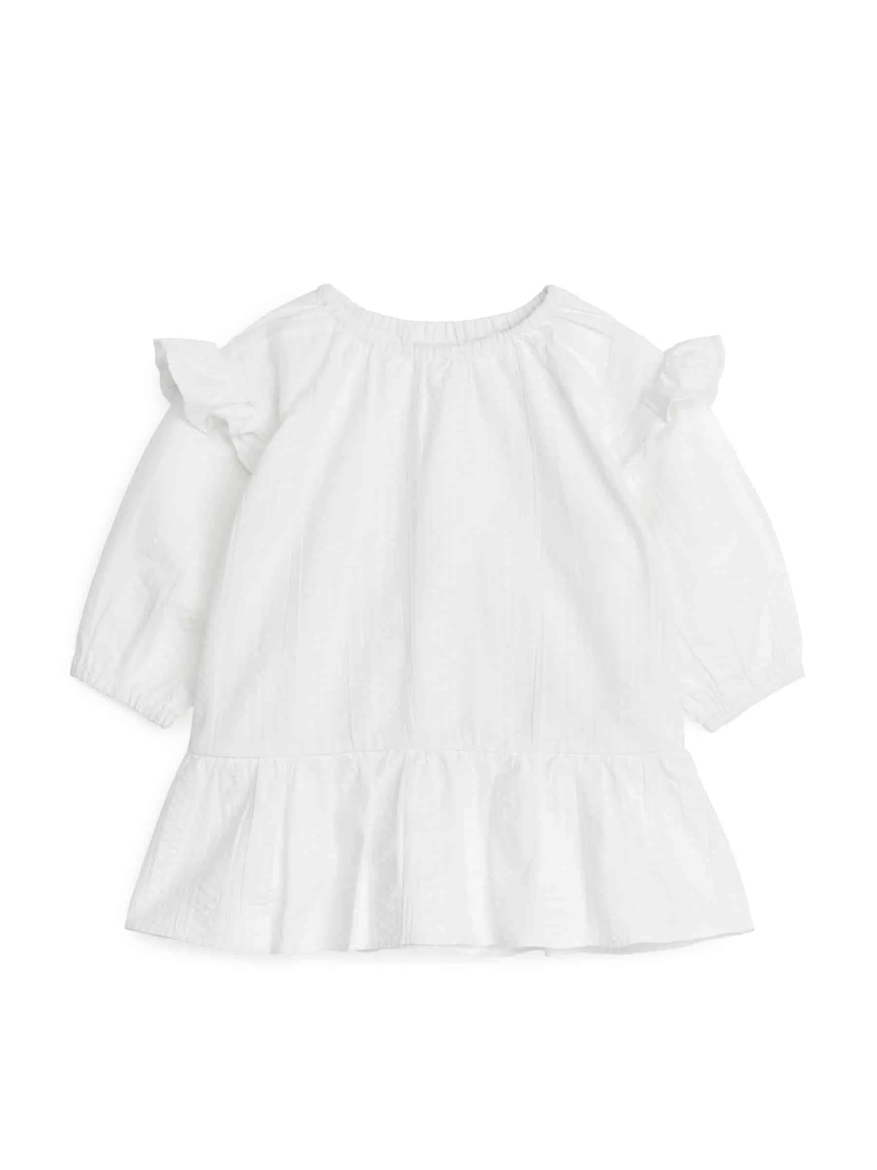 ARKE Kinder Seersucker-Rüschenkleid Weiß