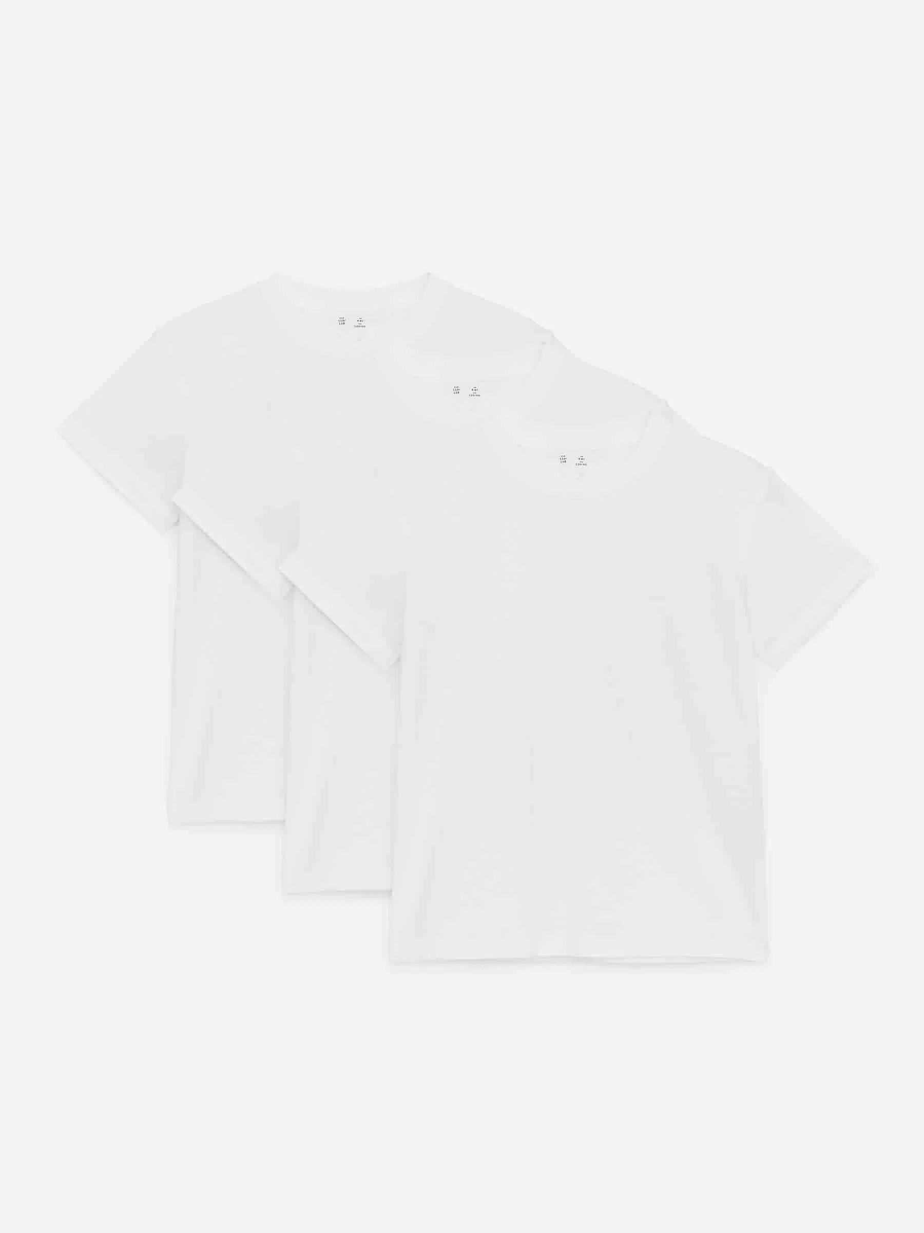 Stapel-T-Shirt aus mittelschwerem Baumwolljersey. Es hat eine normale Passform und einen Rundhalsausschnitt. Verkauft im praktischen Set mit drei Teilen.