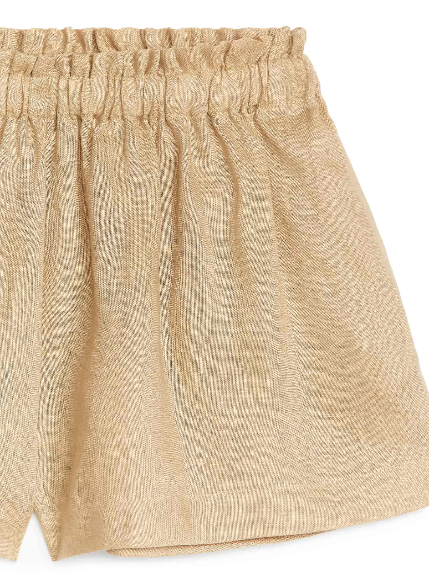 Weite Leinenshorts mit Paperbag-Taille und Taschen in den Seitennähten.